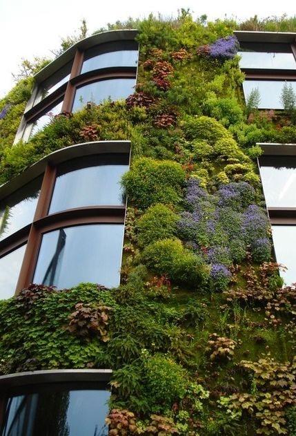 The living wall adds interest to the space while also providing natural air filtration. KEYNOTES: