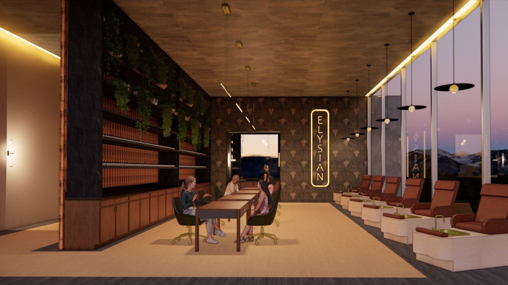 Private spaces, such as massage rooms and float tanks, will be quiet and dimmly lit through decorative and accent lighting.