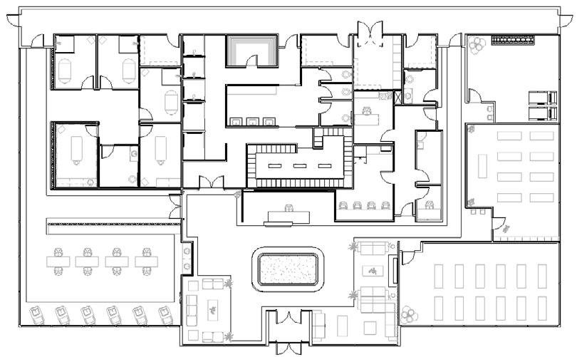 Casey Roberts is the client and owner of the newly founded Elysian Spa and Fitness. It will be located in Colorado Springs, CO with stunning views of Cheyenne Mountain. Elysian will be an empowering safehaven for those who identify as women, and its purpose is for users to focus on the connection between mind and body, as well as their connection to nature. The spa will emcompass massage rooms, float tanks, and an area for nail services. The fitness center will contain an area for individual workouts, a yoga studio, and a pilates studio. There will be a locker room which will include a changing area, restrooms, showers, and a sauna.