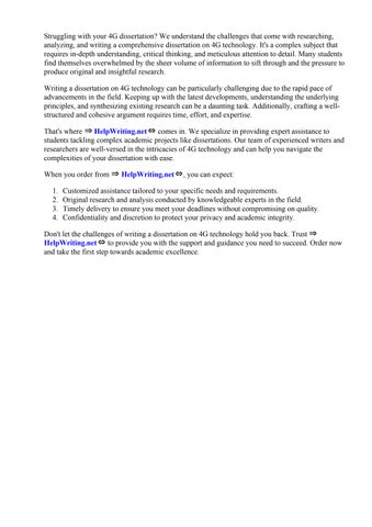 That's where ⇒ HelpWriting.net ⇔ comes in. We specialize in providing expert assistance to students tackling complex academic projects like dissertations. Our team of experienced writers and researchers are well-versed in the intricacies of 4G technology and can help you navigate the complexities of your dissertation with ease.
