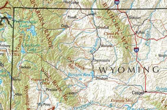 Thermopolis: Days Inn, Best Western, Blair’s Supermarket, Shopko, Hellies Tepee Spa, Star Plunge, Flying Eagle Gallery, Big Horn Inspection, Central Bank & Trust & Bangkok Thai Restaurant.