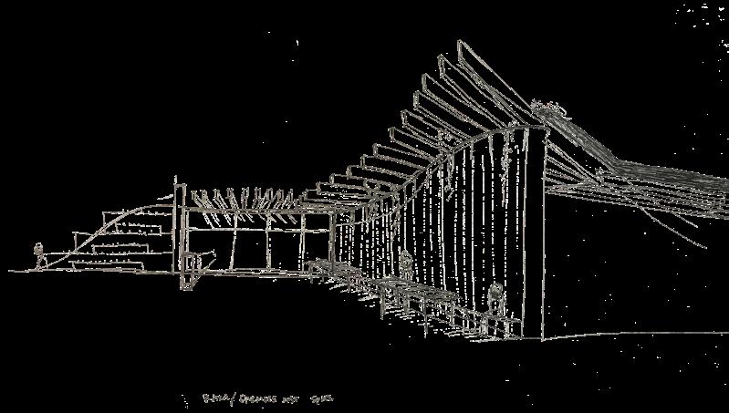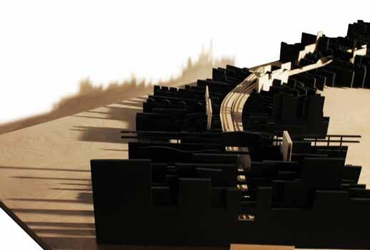 Arches are used to separate program and circulation. mirrors and other light throwing technologies are used between the gaps. The larger arches are filled with earth that would be removed from the site
