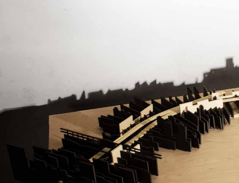 The final booklet scales down the large drawing and contains all the descriptions of the characters and the proposed interventions along the train line. It also contains representative sections of the neighborhoods, referencing the final model.