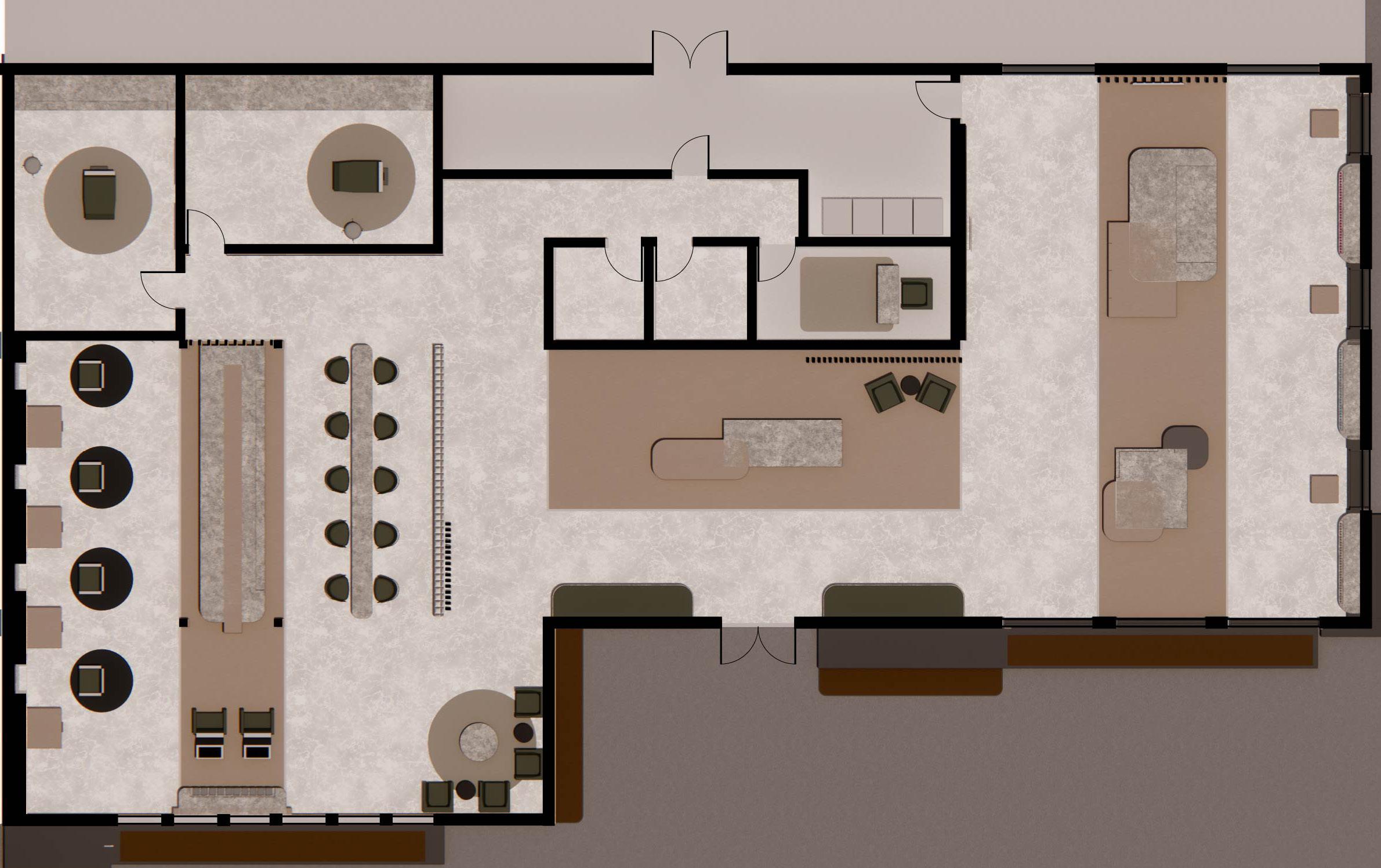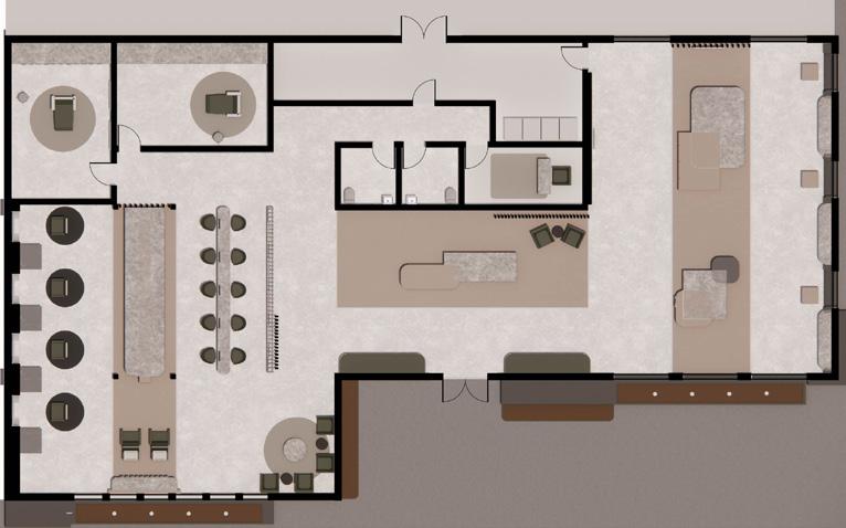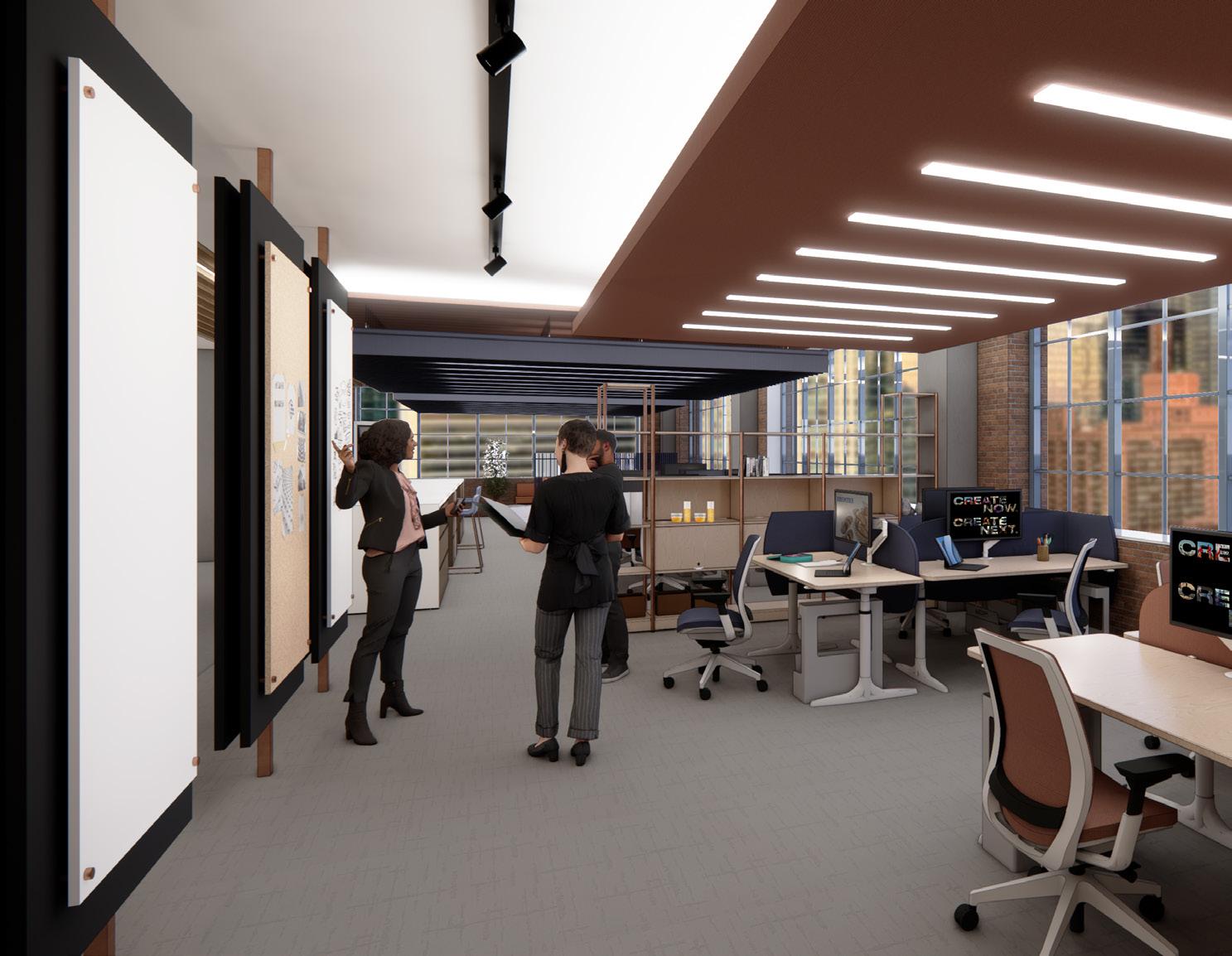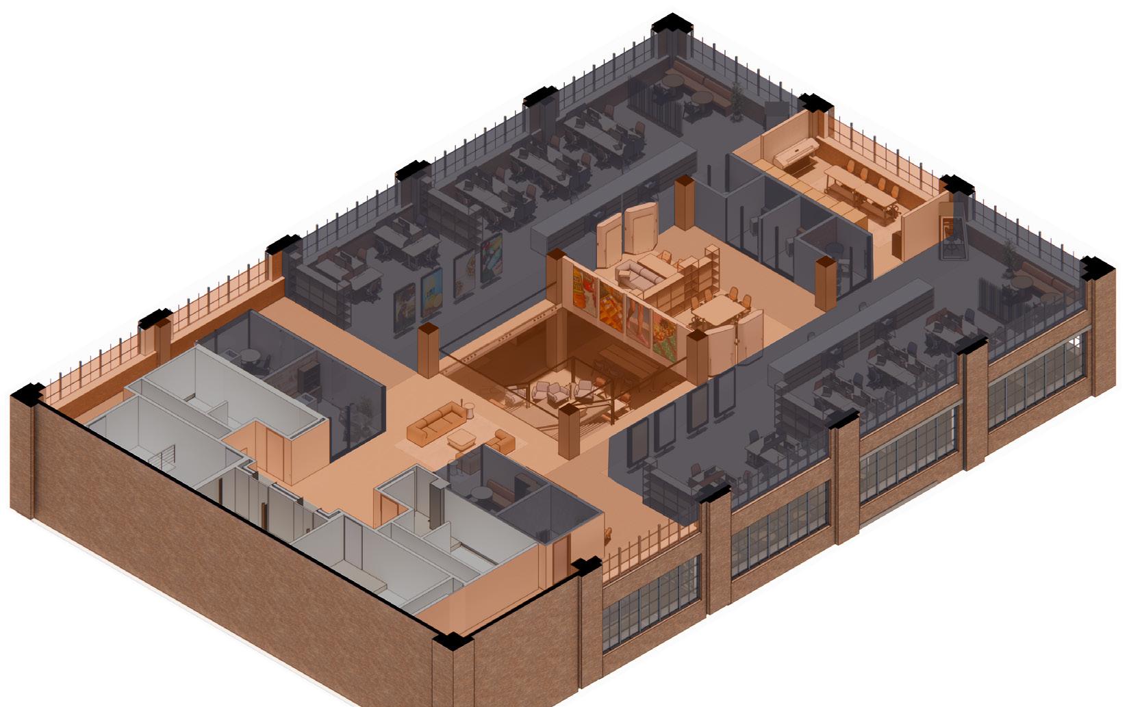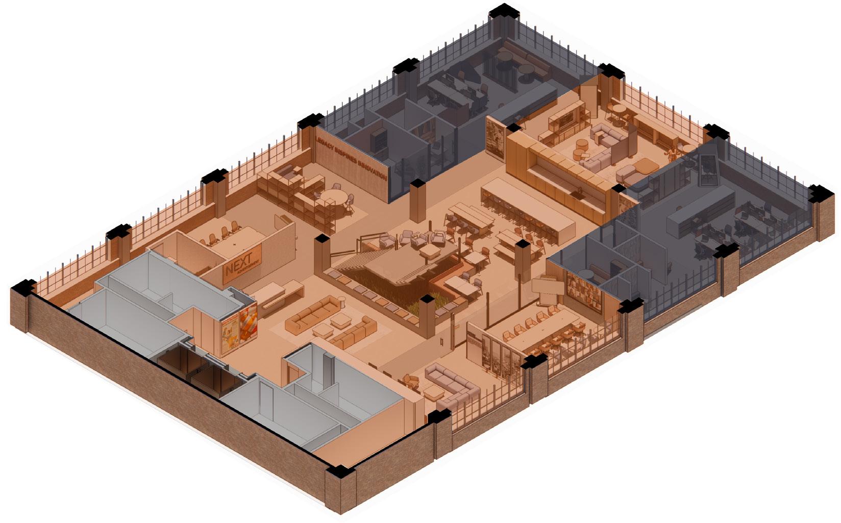 This studio project entailed designing an advertisement office for NEXT. NEXT is a design competition created by Steelcase to challenge interior design/architecture students to image the workplace of the future. The building is located in Fulton Market, Chicago, and is around 16,000 square feet. The goal for this project is to respond to the ever-changing demands of workplace design, inclusive design principles, and incorporate many different design strategies within 16,000 square feet.