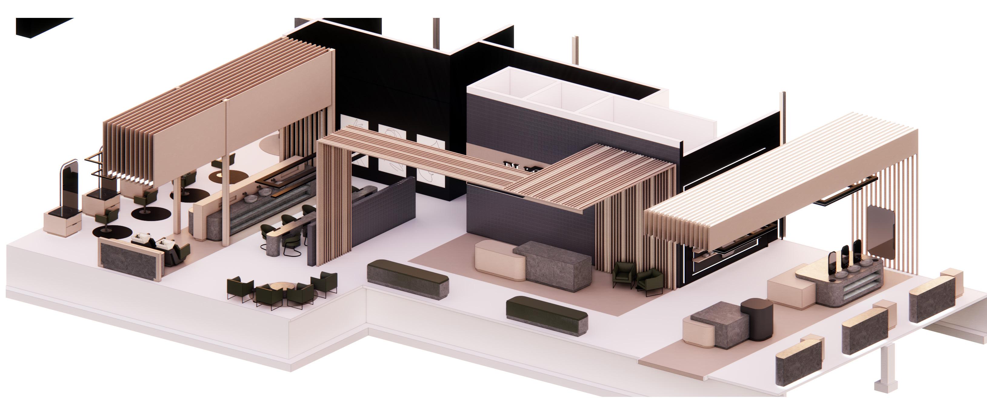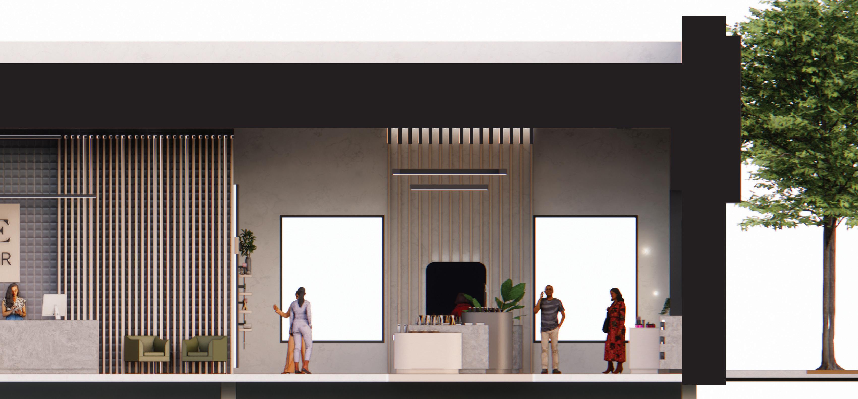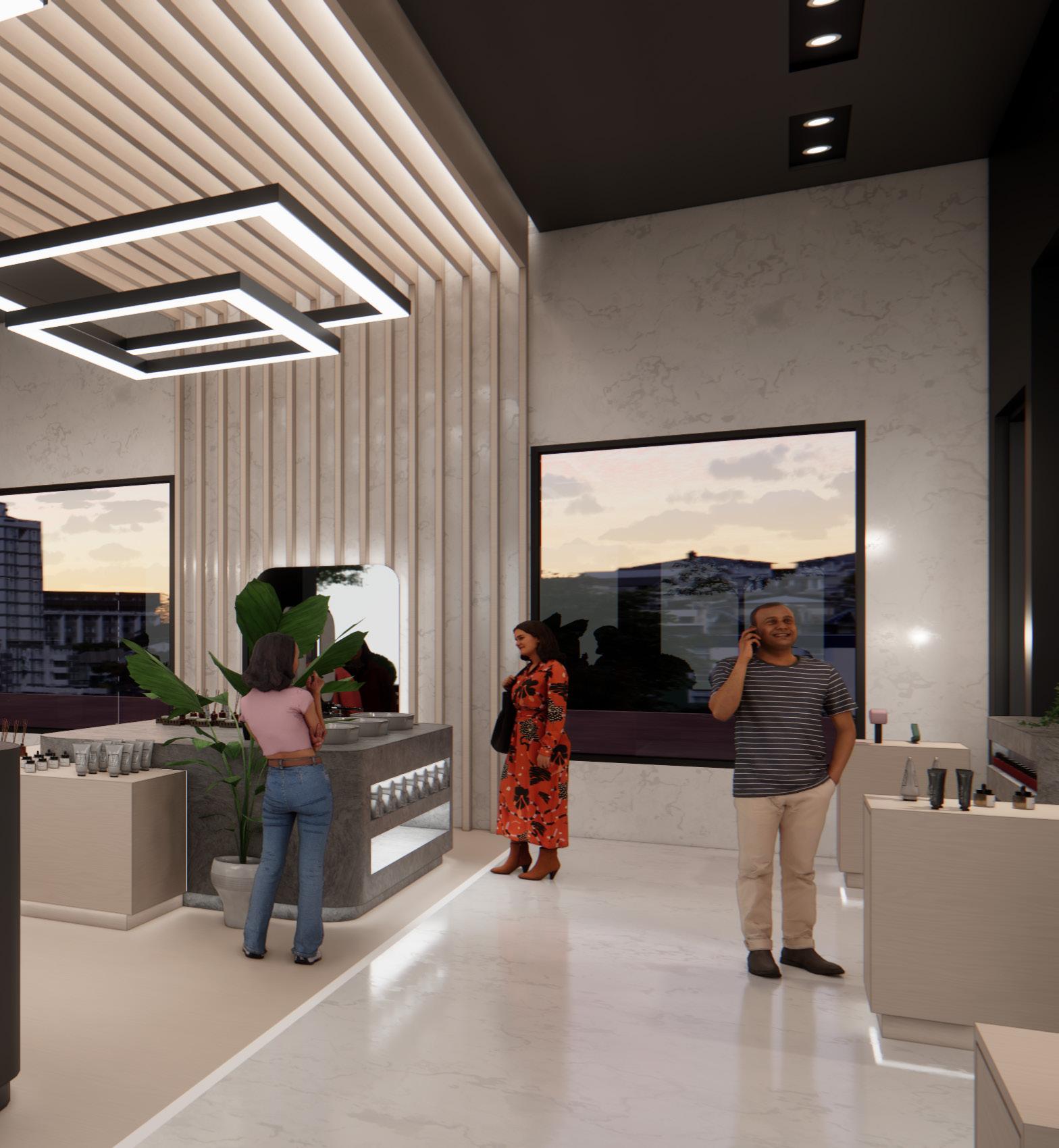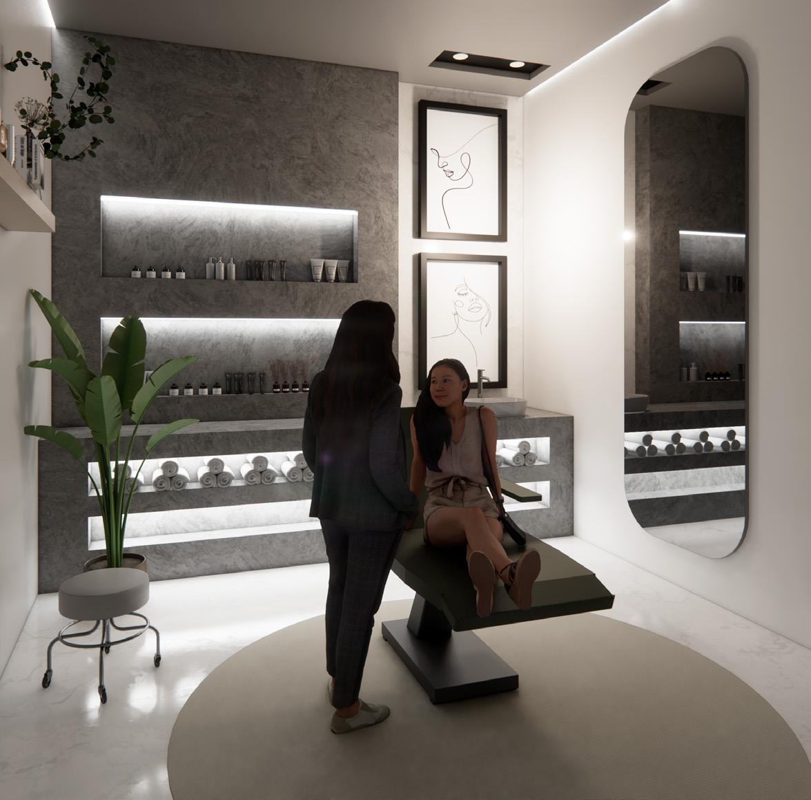 Embracing the concept of layers, Elevate offers a multidimensional experience that celebrates the natural glow of hair, skin, and nails. The salon’s design draws inspiration from the interplay of light and darkness, creating a harmonious contrast that highlights the beauty of each individual. Through intricate sculpting of walls and strategic use of materials, forms are carved out to reveal and enrich the space. Layering structures within the walls and ceilings contrasts solidity and airiness, creating visual intrigue. Lighting is carefully orchestrated to illuminate the various dimensions, while the interplay of colors and textures defines the space, imparting a luxurious, multi-layered ambiance.