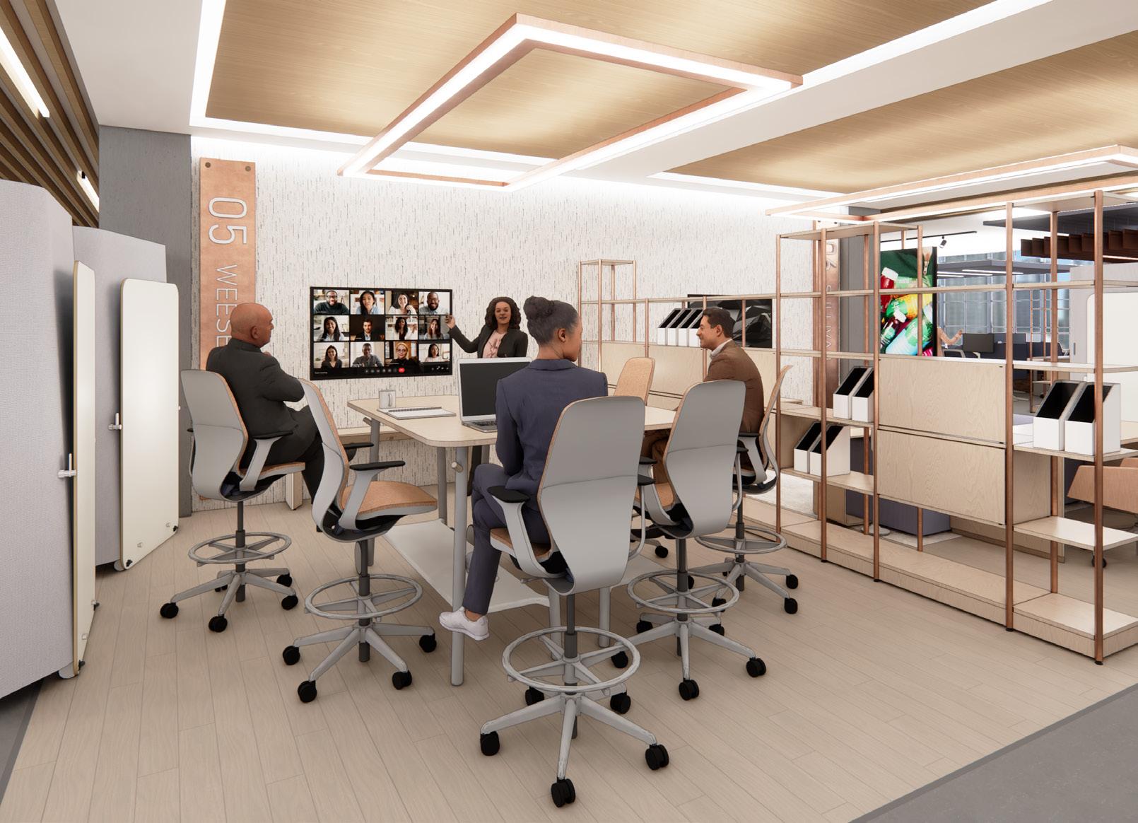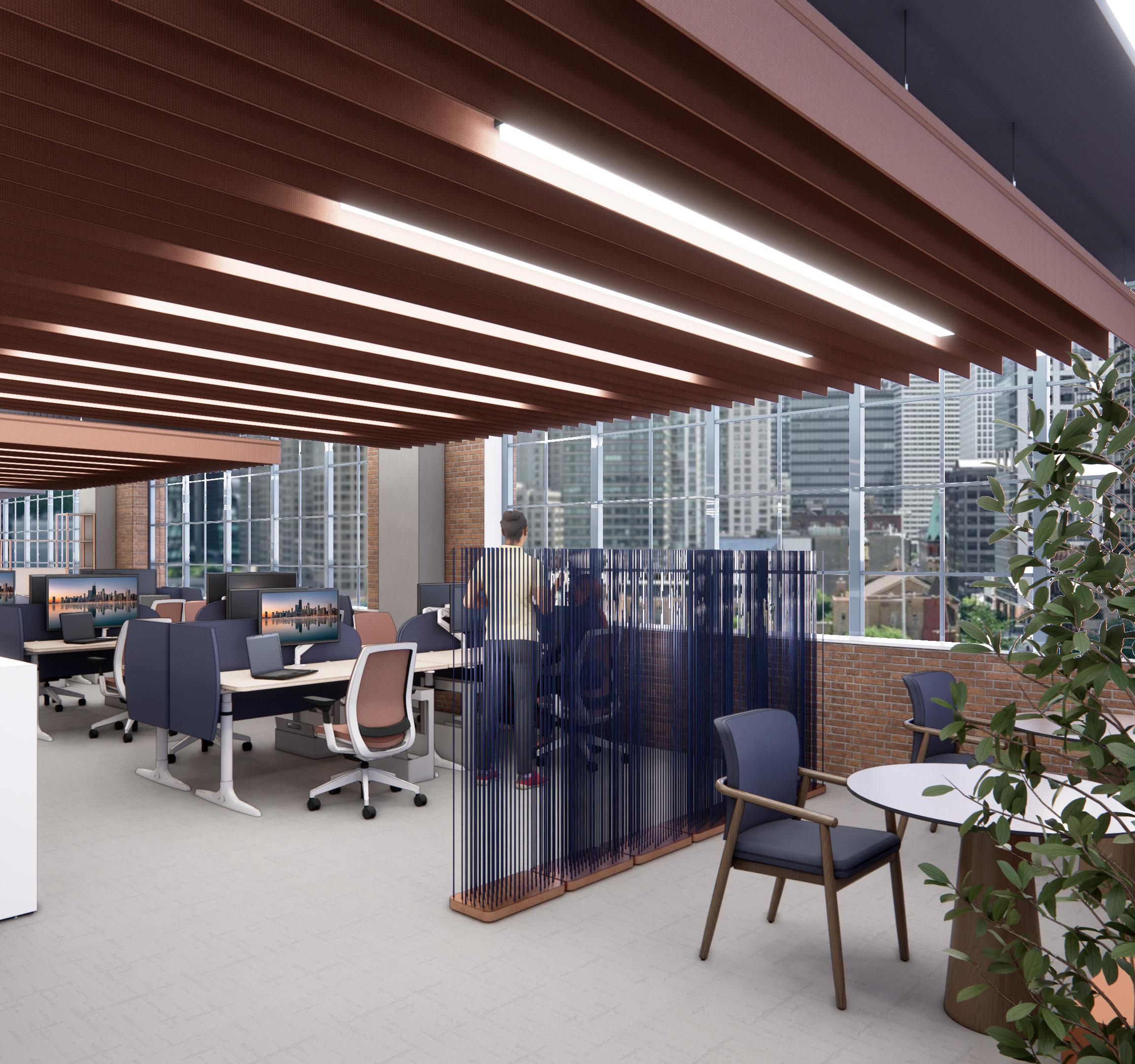 “Legacy Inspires Innovation” blends Chicago’s rich modernist history with contemporary design and technology, creating a workspace that honors the past while looking toward the future. Inspired by the city’s industrial architecture, the design incorporates solid, enclosed spaces for focused work, using materials like exposed steel, brick, and polished concrete to evoke permanence and connect with Chicago’s iconic industrial aesthetic. In contrast, open, light-filled modular spaces reflect the innovation aspect, fostering collaboration and flexibility through features like glass partitions, natural light, and adaptable layouts. By merging historical elements with modern technology, the design creates an environment that fosters productivity, collaboration, and forward-thinking growth.