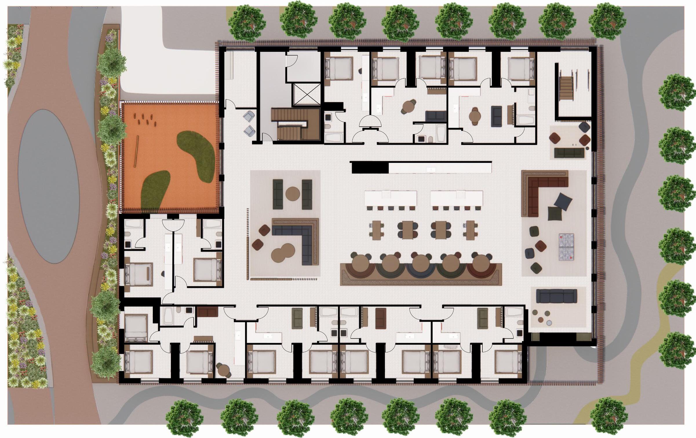 Growing Together centers on the idea that people grow, adapt, and support one another over time, especially within a community. For this project, the goal was to create a design that helps single parents and their children build stability while also connecting with the neighborhood around them. We approached this concept by creating spaces that encourage both independence and togetherness, using shared areas, natural materials, and comfortable transitions between zones. Overall, the design focuses on making a place where families can feel supported, grow at their own pace, and build a stronger sense of belonging.