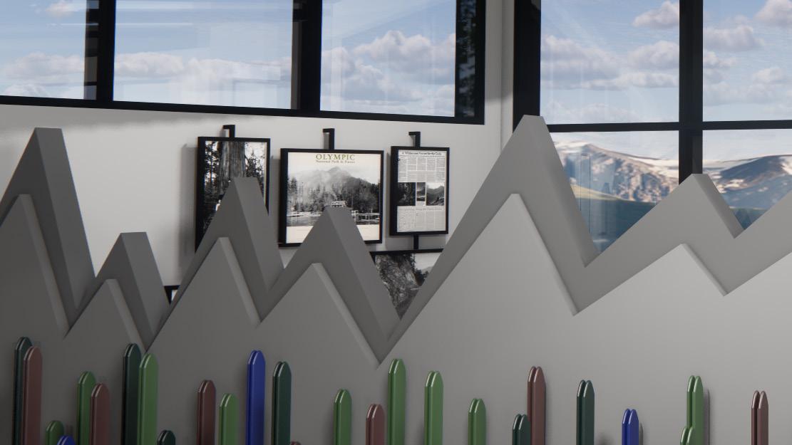 Hurricane Ridge Visitor Center is located at Olympic National Park in Washington. In May of 2023 the original Hurricane Ridge Visitor Center was struck by lightning and burned down. This lead me to my concept of Preserve and Protect. The purpose of this rebuild is to behind the park, as well as keep the amazing views of the mountains. I did this by keeping the existing ski rental space, big open windows for views, and creating interactive spaces for people to come enjoy the history.