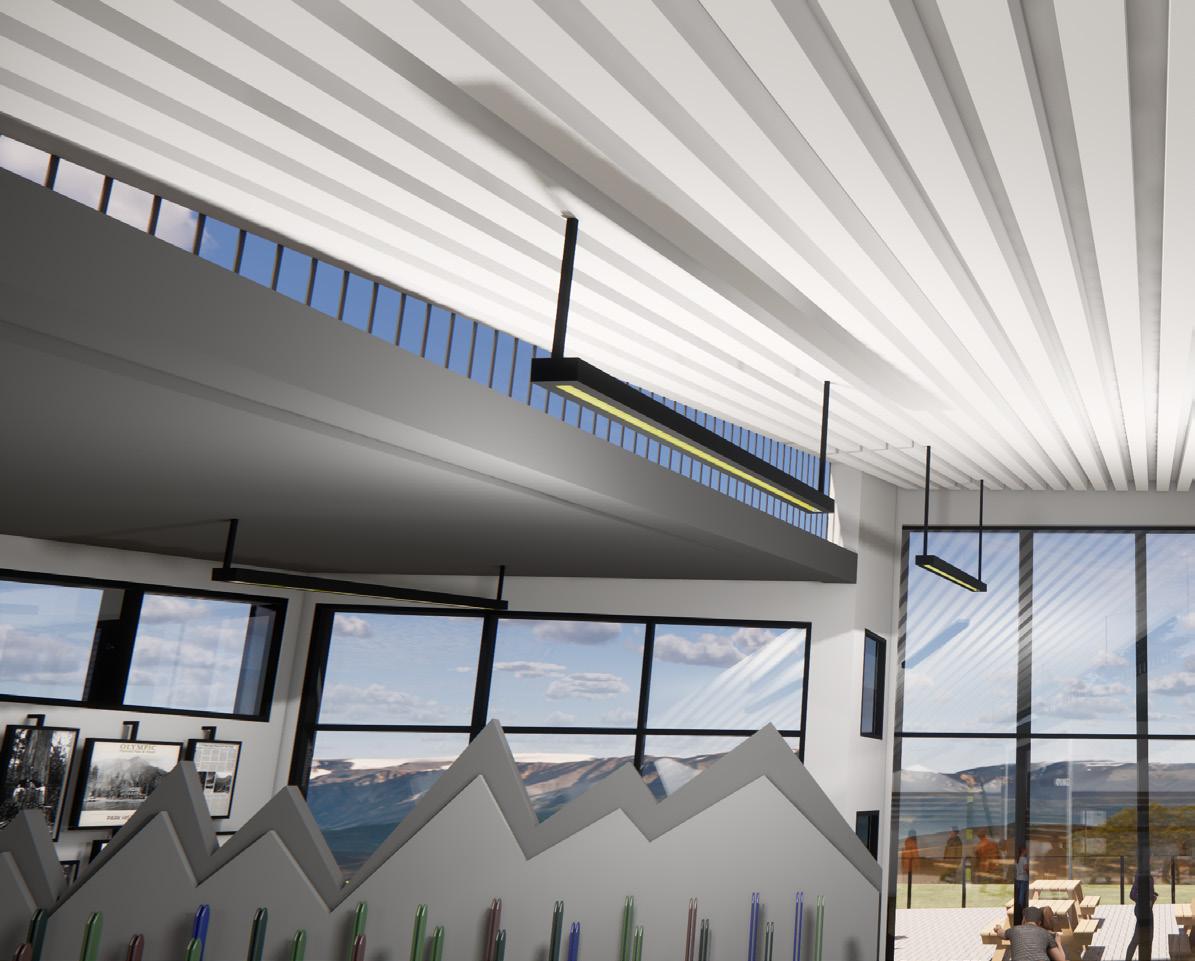 For this project, I wanted to create details that not only made the space more unique, but also incorporated my concept of preserve and protect by using small details from freshly groomed snow, chair lifts, and mountain tops to enhance the visitor center journey.
