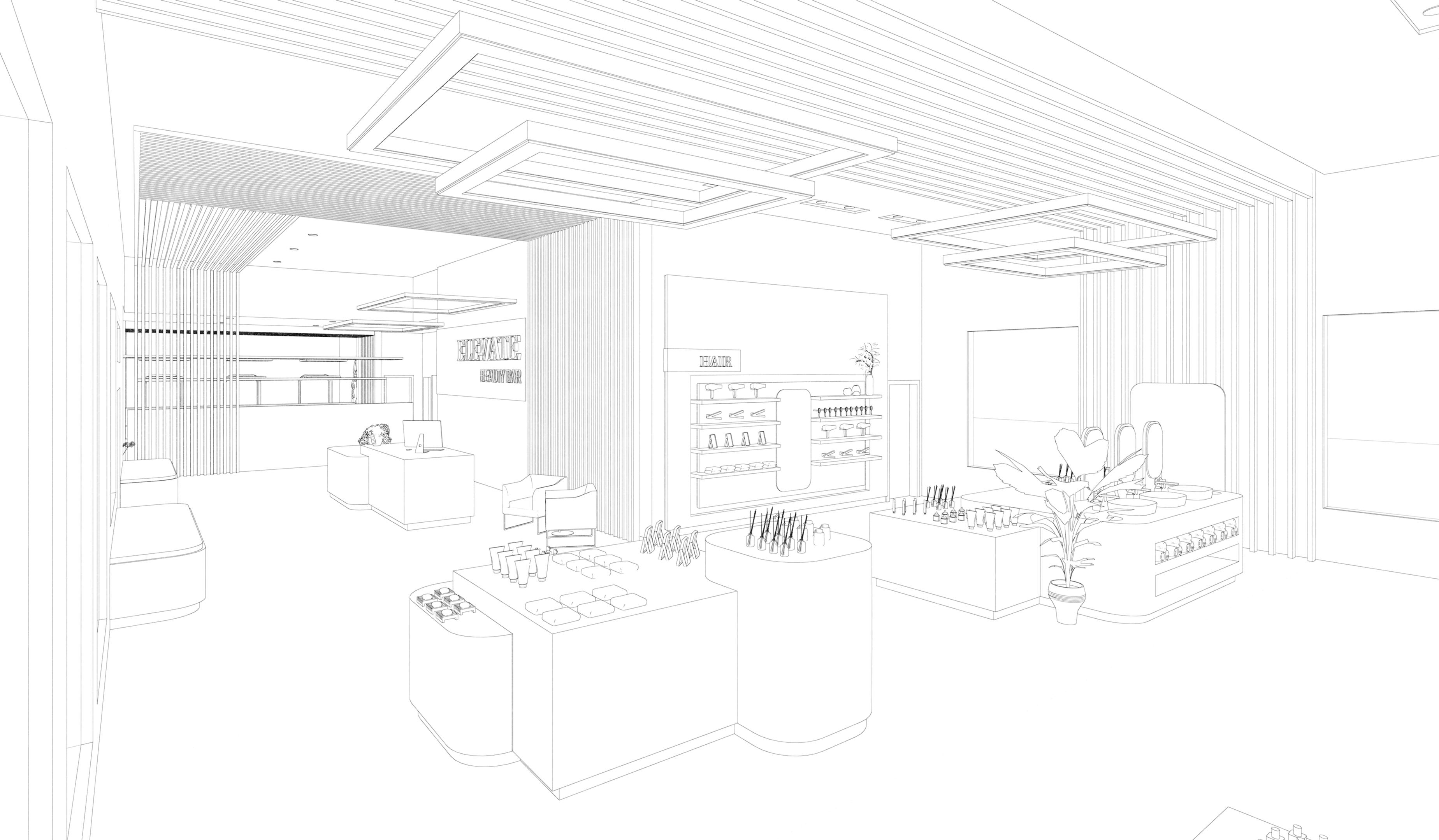 This studio project entailed designing a retail space combined with an interactive space to showcase an interactive experience. Elevate Beauty Bar is in Los Angeles, California, located near Rodeo Drive. The purpose for this space is to give many people the opportunity to reach their beauty goals by walking into this space.