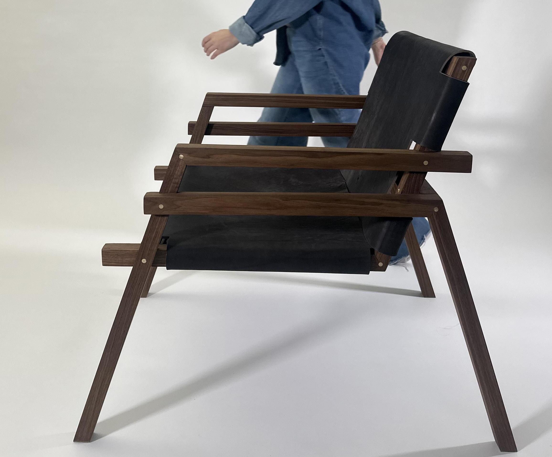 The goal for this furniture piece was to design a chair that was visually appealing, comfortable, and durable. I aimed to create a design that could be easily duplicated while including detailed moments that made the chair feel sleek and refined. I used the CNC and learned the Shaper tool to fabricate the components, then applied my joinery knowledge from the stool project to assemble the chair without hardware. I also built on my leatherwork experience from the stool, adding detail and focusing on how the leather connects to the structure to enhance both function and appearance.