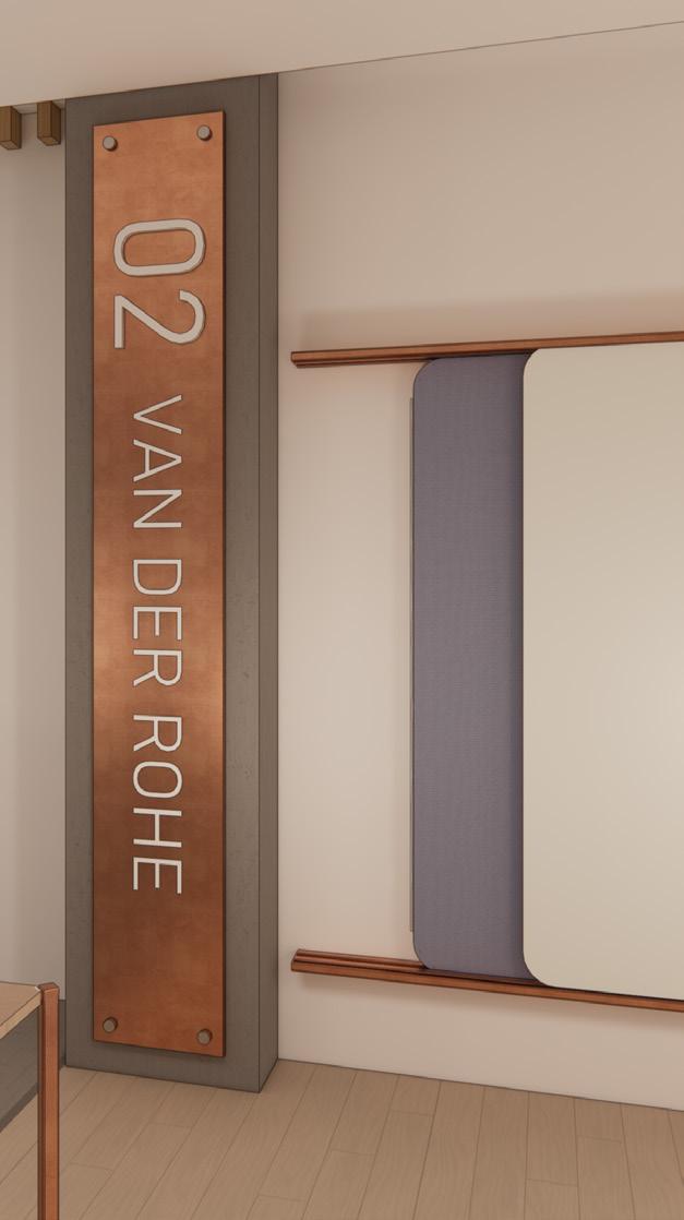 Inspired by the modernist architects that made Chicago the birthplace of modern architecture, the titles of NEXT Advertisement meeting rooms tie the project back to where it all began as well as creating a memorable experience that guides navigation.