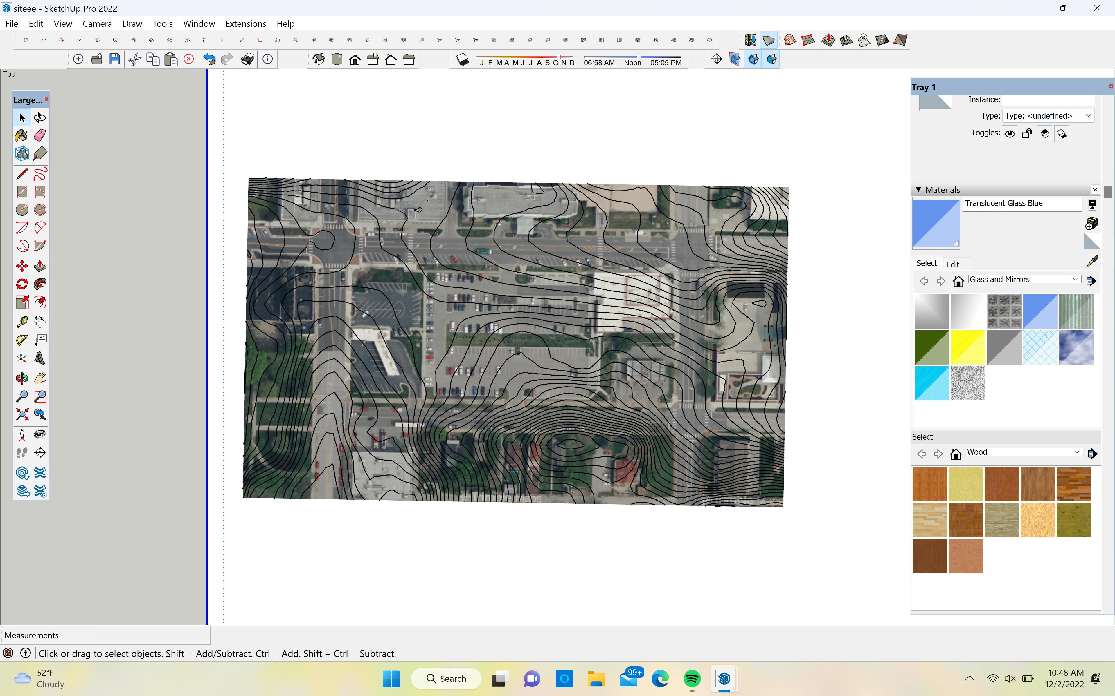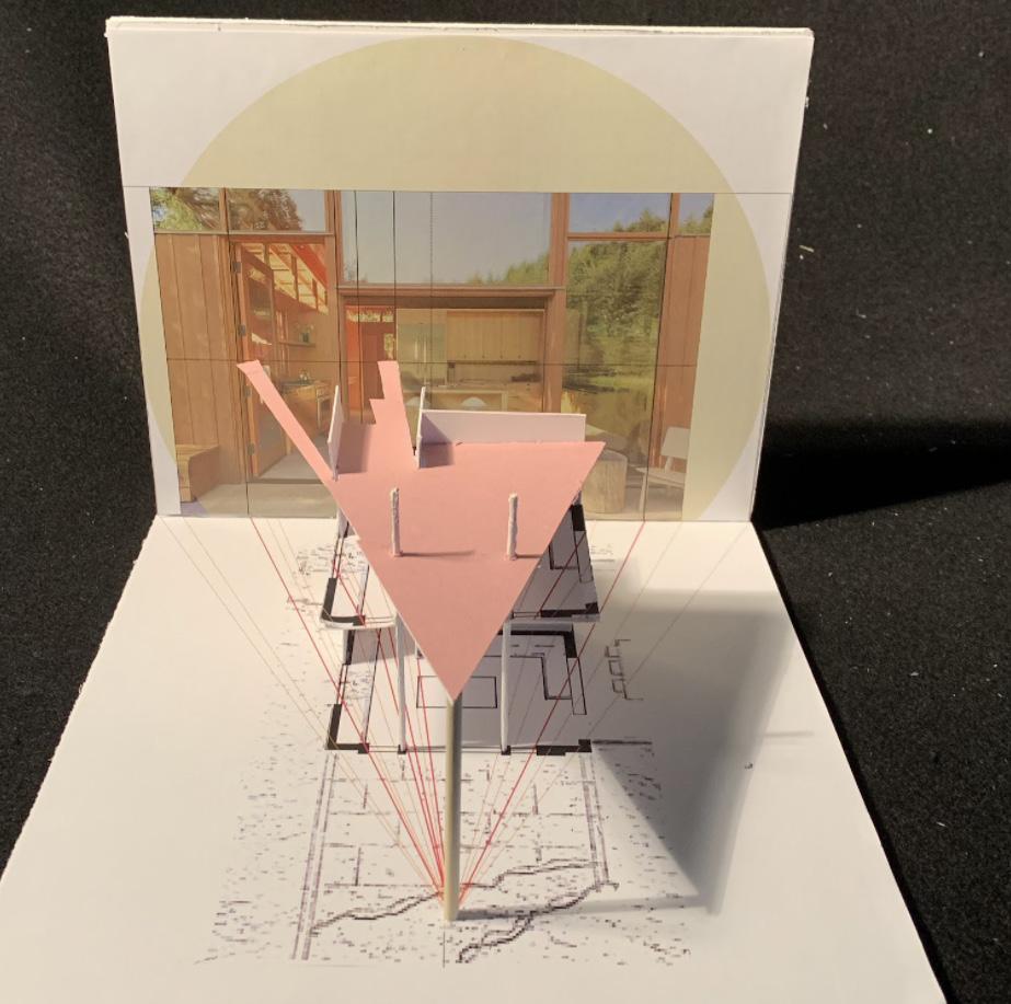 For this project, we were supposed to pick from a list of architects and pick one of their works with a floor plan. I chose one from Cutler Anderson Architects, the Newberg Residence. This house immediately caught my eye due to the water feature and the usage of glass. The house feels embedded into the scenery. After choosing a residence, we find a picture taken of a part of the building and connect the plan with the view, hence the name viewfinder. It was incredibly difficult to find the point the picture was taken, but after many trials, I finally got all of my guide lines to line up correctly and I found my spot. For the model I did not put in all the walls of just the one room, but added only the ones that were important.