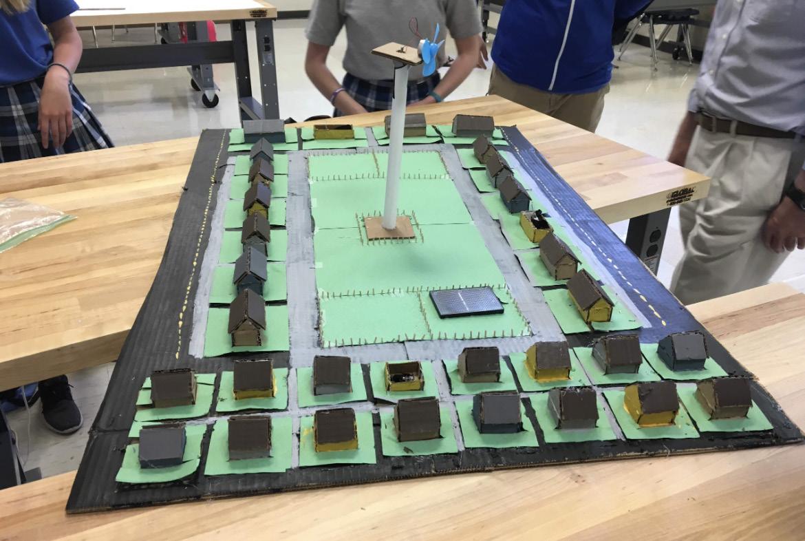 In my STEM class my sophomore year, a few students and I created a neighborhood powered by solar power and wind turbines.