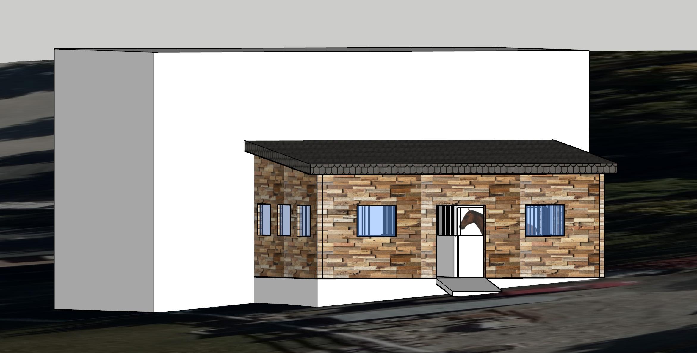 Over winter break, I created a small model for a stable. My father always says he wants horses. What my father said he wanted in a stable for his two horses was windows that were 3’ x 4’, a 5’ wide sliding door, wide enough for the horses to get through. The stables had to be big enough for the horses, so 12’ x 12’. Lastly he wanted a small hallway to that connected the stable to what my dad calls the saloon because he built his storage unit to look like an old western saloon.
