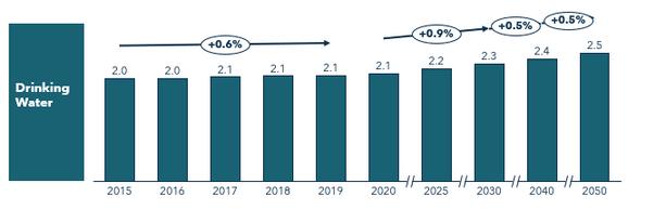 At the end of 2022, several French local authorities including ClermontFerrand and Roubaix voted for a tariff increase of around 10% for 2023. The price per cubic meter of water has risen by 7 to 11% in several French agglomerations such as Paris, due to high costs in energy supply and water treatment chemicals. Water tariffs are expected to grow at ~1% per annually until 2030 to finance the infrastructure upgrades required to maintain service continuity.