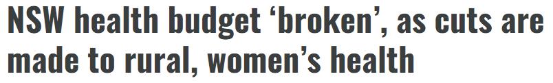 Rural and regional communities have also been let down with limited support for already stretched local health district health budgets and no effective incentives to retain doctors in these regions.