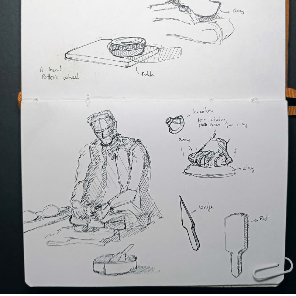 Rather than taking notes/ clicking photos or any form of digital documentation, sketching abilities are preferred to document what is being explained and shown.