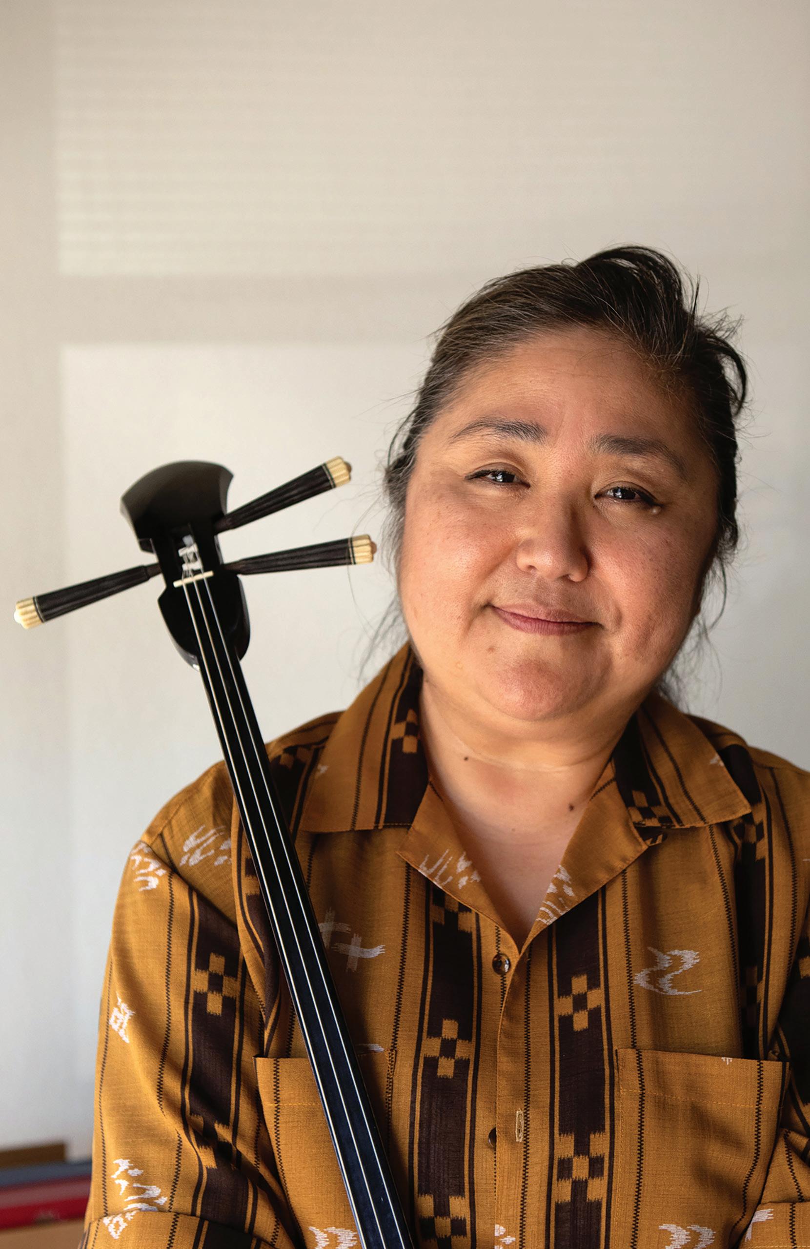 While she continued her dance practice, she also began taking lessons to learn to play the sanshin, an instrument with roots in Chinese culture, and sing while playing it. For Yamauchi, who spent her childhood playing cassettes and dancing to this music, learning how to play it was a dream come true.