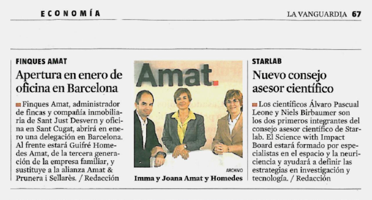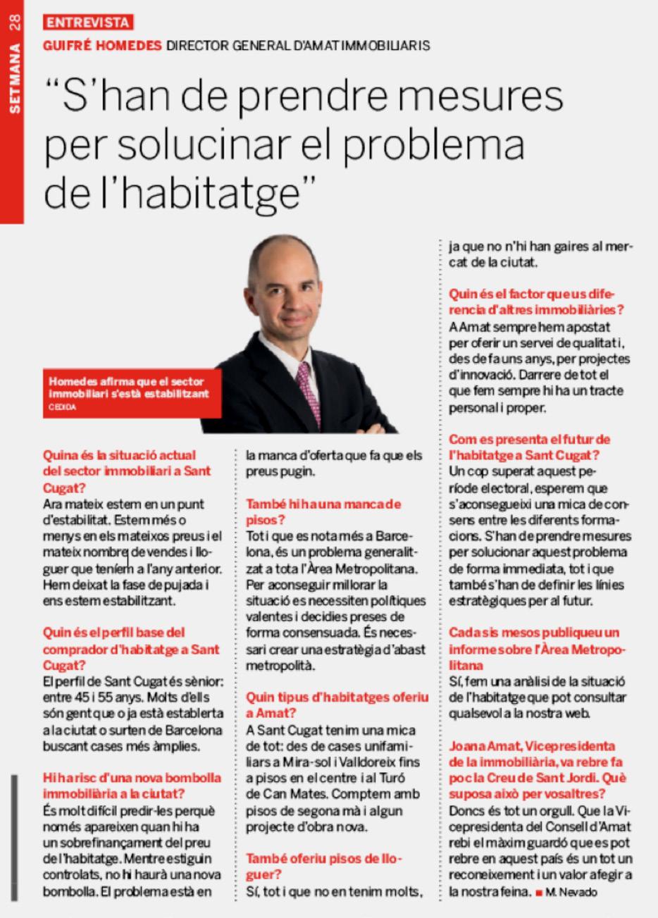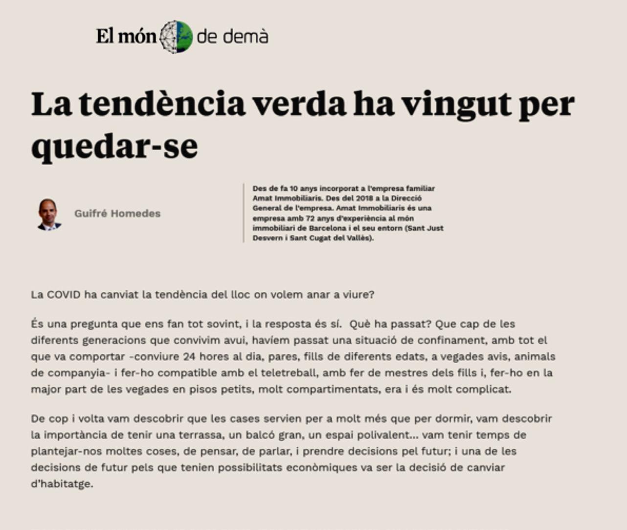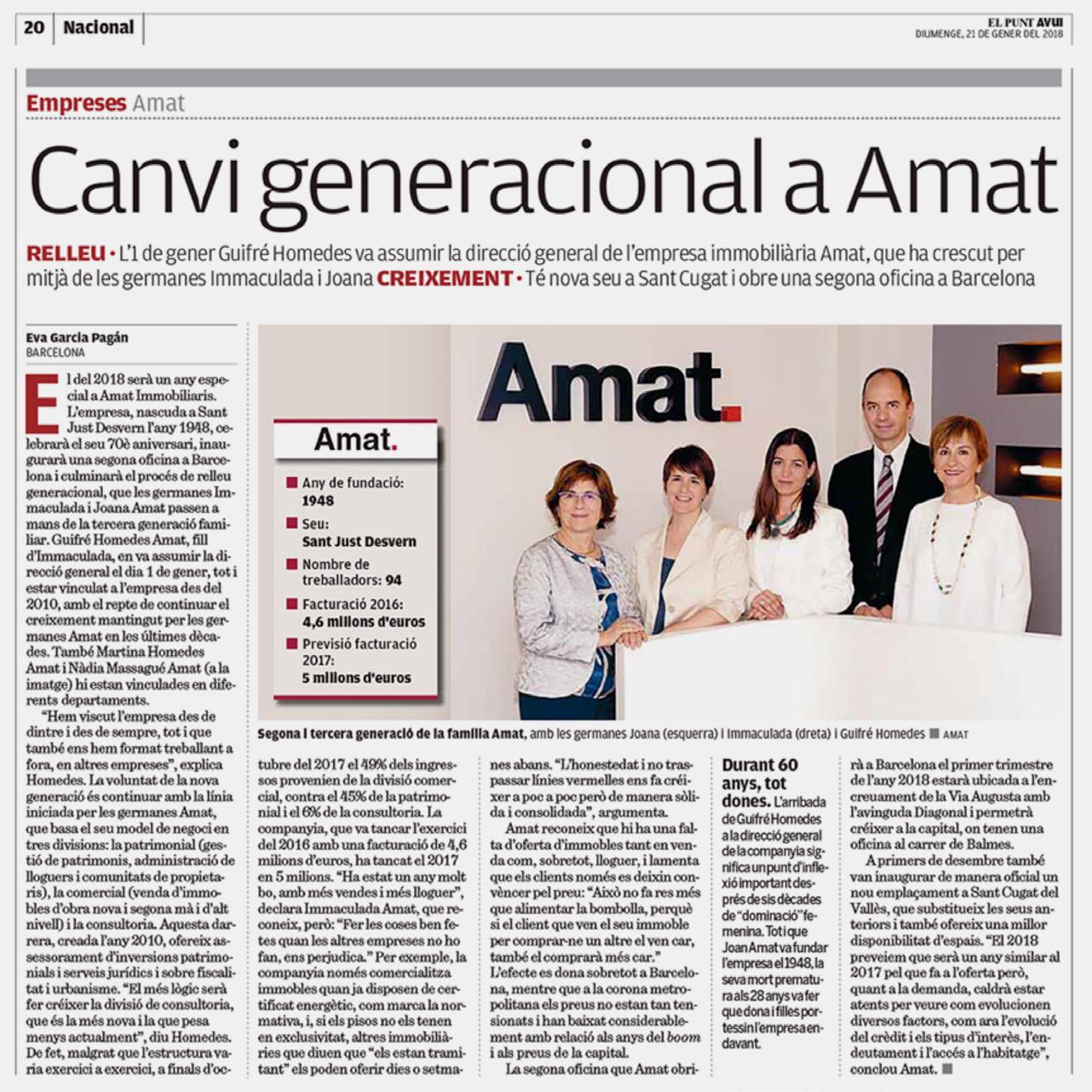 Guifré Homedes pasa a ser el nuevo Director General de Amat. No lo tiene nada fácil, ni interna ni externamente. Internamente, porque hace muchos años que Imma y Joana han sido las directoras, y externamente porque necesitará mucho esfuerzo para hacerse visible en un mundo inmobiliario y una sociedad en la que las referentes han sido siempre ellas