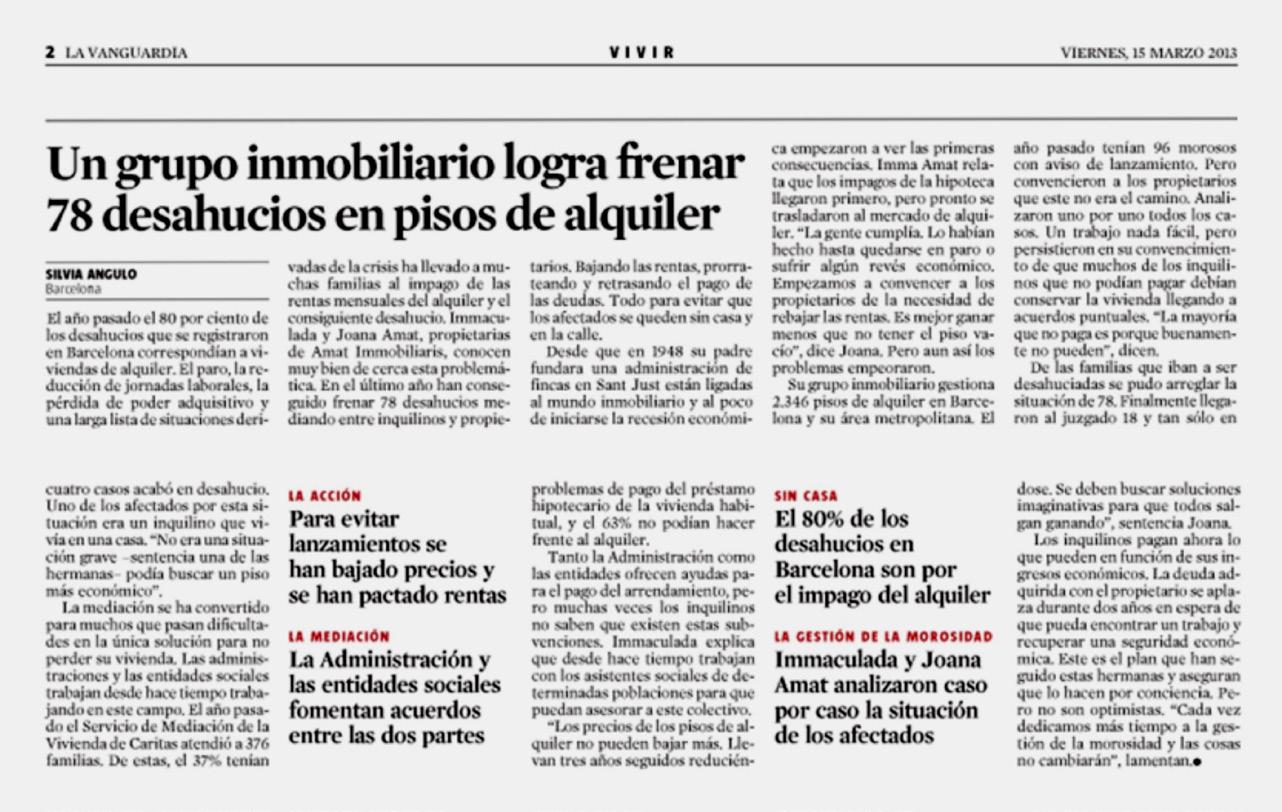 En esos momentos el sector inmobiliario tenía una visión de los inquilinos como si fueran de segunda. En Amat lo vemos diferente, y en todo momento trabajamos para mejorar la relación contractual entre inquilino y propietario, creando un cuestionario de control de entrada y salida de las viviendas