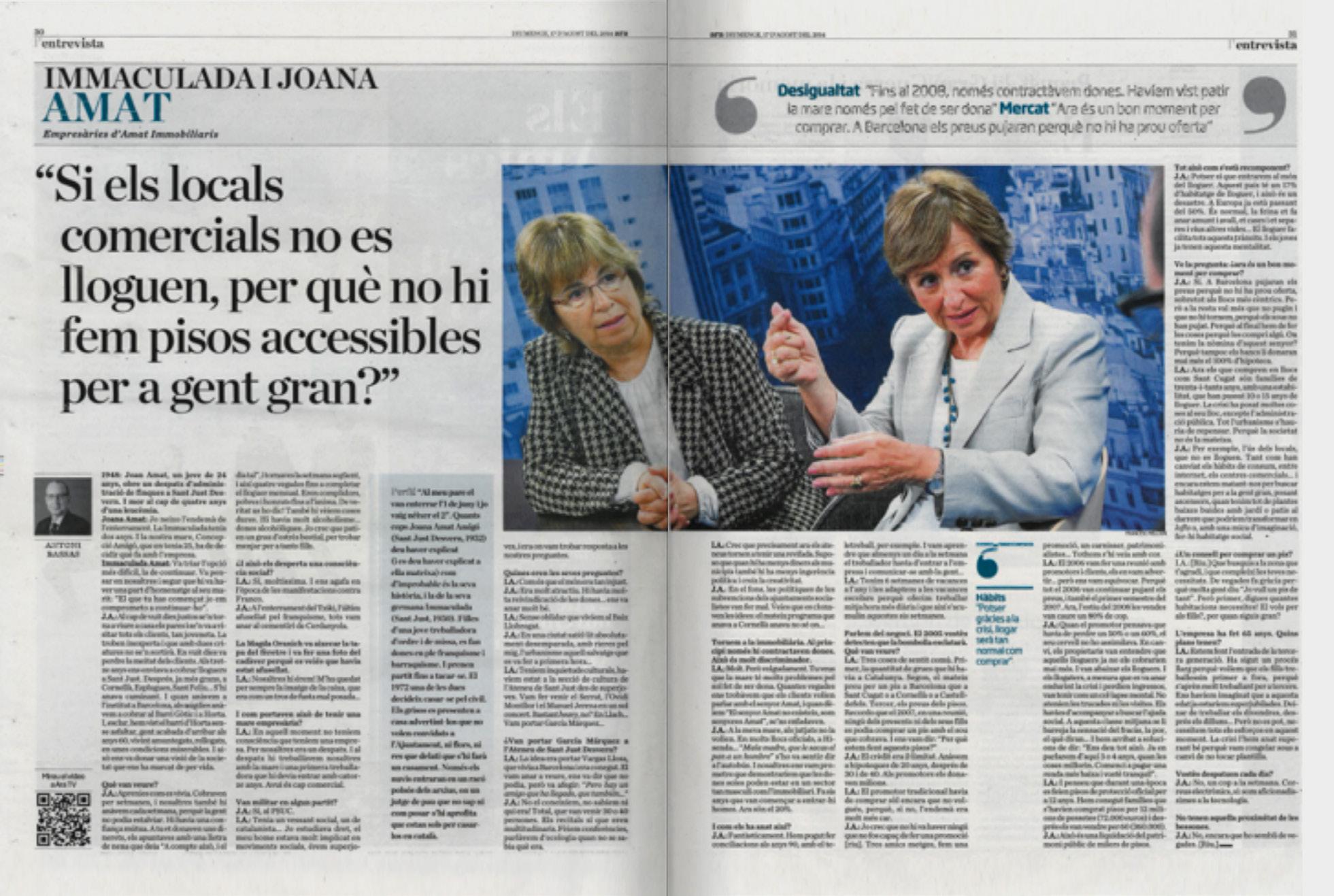 TV3 se instala en Sant Joan Despí y Amat es protagonista del programa Actual donde se entrevista a Concepció Amigó, las hermanas Amat y trabajadoras del despacho por ser una empresa solo de mujeres, hecho inédito en el sector.