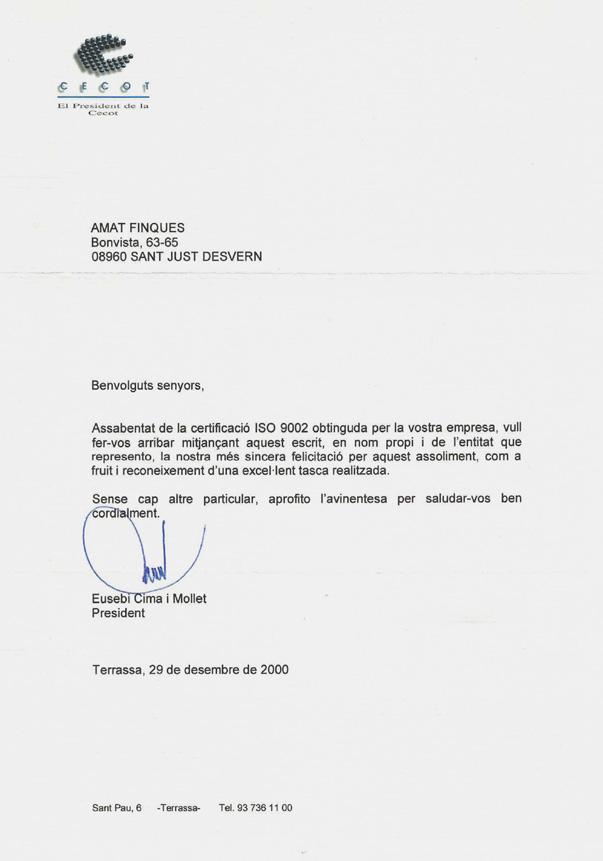 El despacho cada vez gestiona más trabajo, crece el número de personas que trabajan en él y no puede seguir estando en el domicilio familiar. La primera oficina de Amat tendrá 70 m2 y se ubicará en la calle Bonavista, número 101, de Sant Just Desvern.