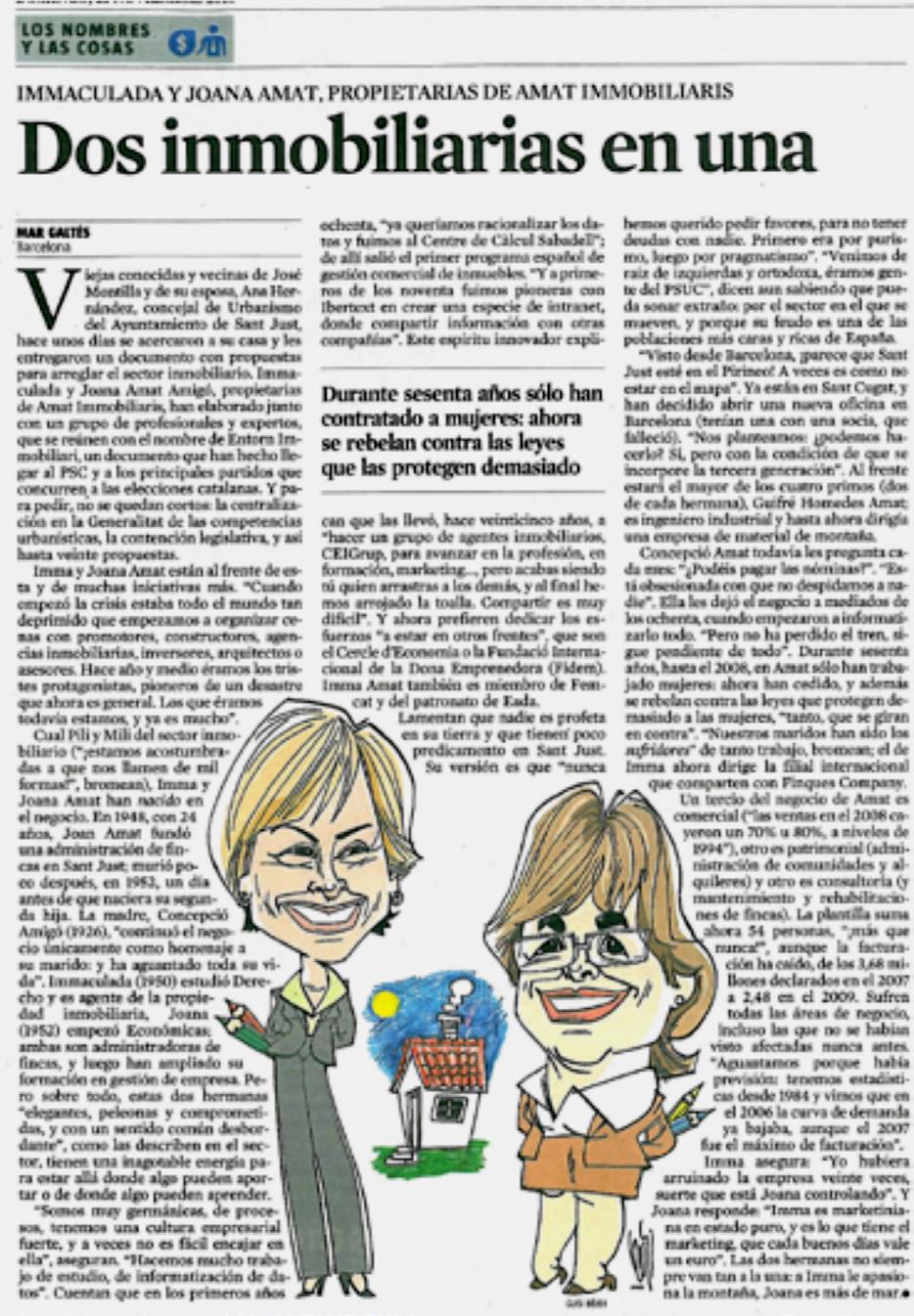 Immaculada, abogada, y Joana, Administradora de Fincas, la segunda generación de la familia, se incorporan plenamente al despacho y este deja de ser “el despacho de la Viuda Amat” para pasar a ser el despacho Amat, Asesoramiento Administrativo de Fincas