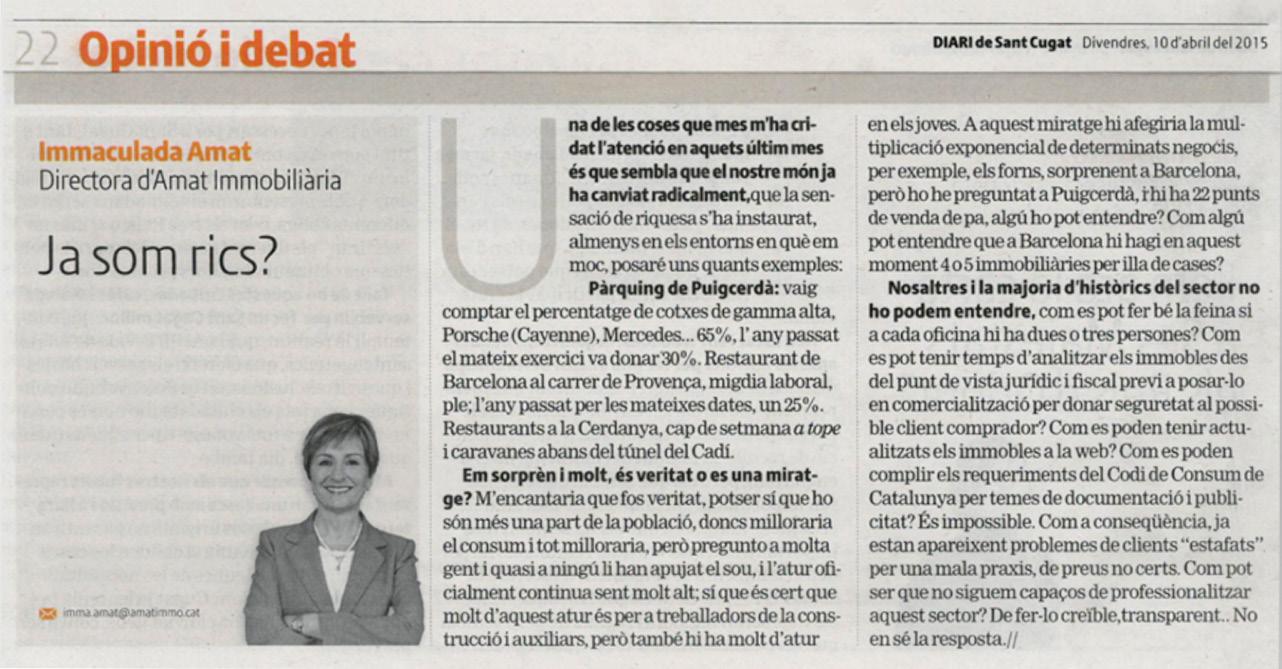 Se inaugura la Escuela Alemana en Esplugues que se convierte en un polo de atracción de directivos alemanes que buscan casa en Sant Just Desvern o Esplugues y en Amat contratamos una comercial que habla alemán para poder