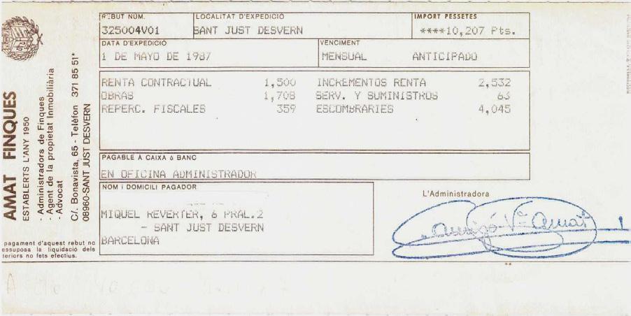 Despacho en la calle Bonavista 101, en ese momento calle José Antonio Primo de Rivera, de 70 m2, y sigue el despacho de Barcelona.