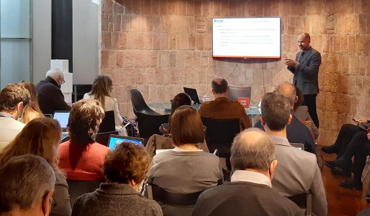 Para ayudar a comunicar y difundir la necesidad de la cultura de la rehabilitación, Amat organiza, de acuerdo con el Colegio de Aparejadores de Barcelona, una serie de conferencias para todos los clientes, en el despacho de Sant Just Desvern, con estudios y datos que quieren transmitir que la inversión en rehabilitación incrementa el valor de la finca y mejora también su rentabilidad. Para reforzar esta idea durante seis meses tenemos en la oficina una exposición llamada “la Casa en forma”.