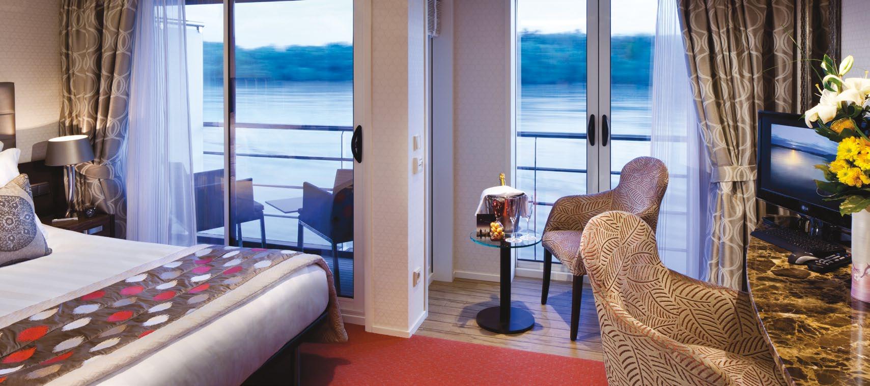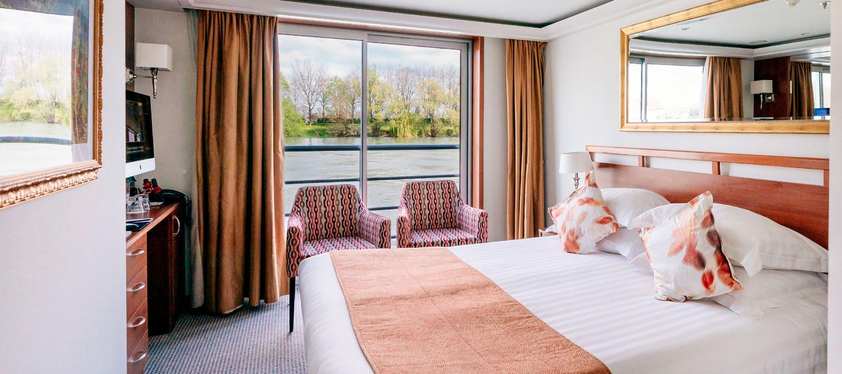 Elegantly appointed riverview staterooms and suites—most with signature twin balconies, French balconies or full balconies