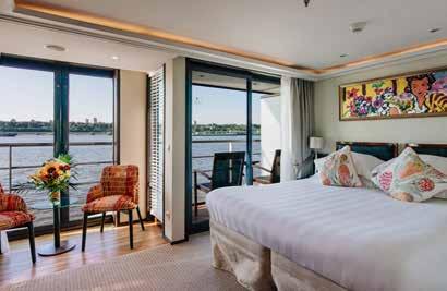 > Elegantly appointed riverview staterooms and Suites—most with signature twin balconies, French balconies or full balconies