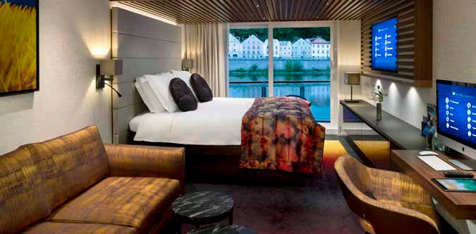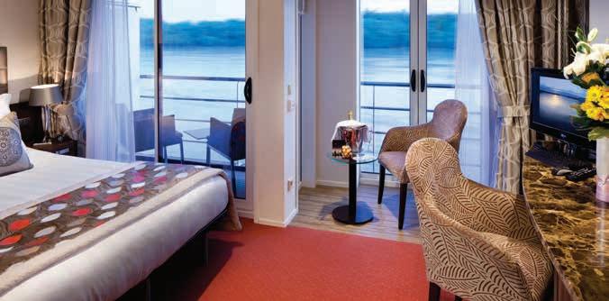 > Elegantly appointed riverview staterooms and suites—most with signature twin balconies, French balconies or full balconies