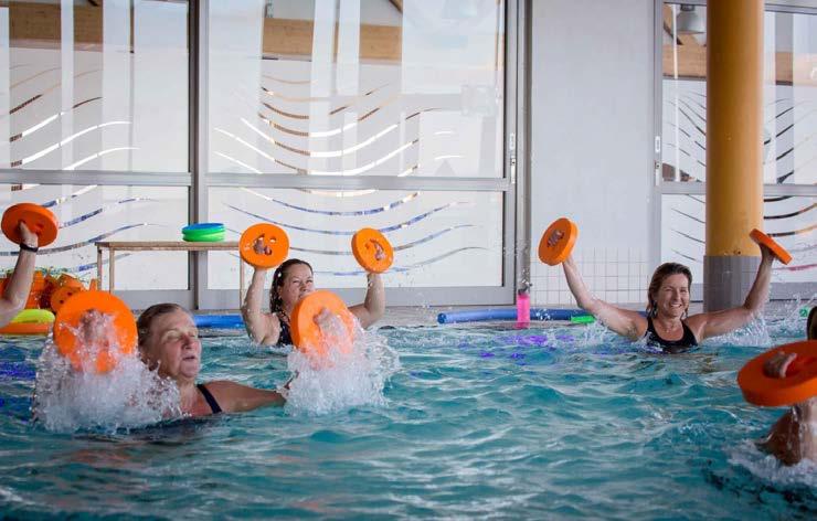 Välkommen till vattengänget! Vattengymnastik är en skonsam och effektiv träningsform som ger smidighet, styrka och kondition. Bassängerna har 32–34 gradigt vatten.