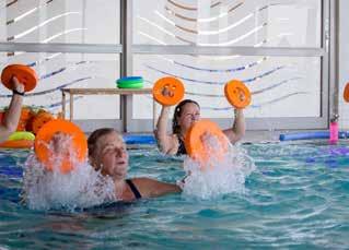 Välkommen till vattengänget! Vattengymnastik är en skonsam och effektiv träningsform som ger smidighet, styrka och kondition. Bassängerna har 32–34 gradigt vatten.