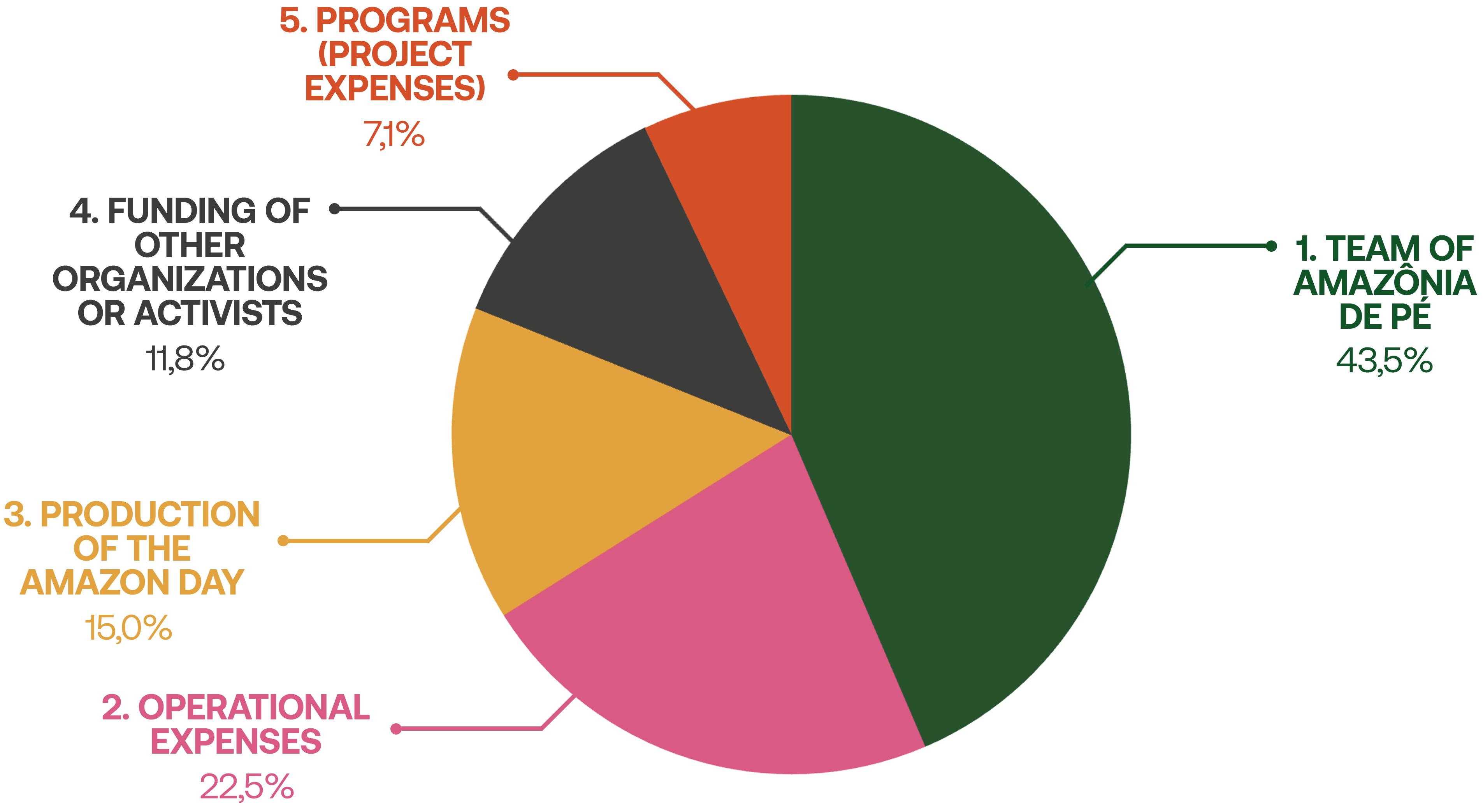 THE ANNUAL BUDGET OF AMAZÔNIA DE PÉ IS DIVIDED AS FOLLOWS: