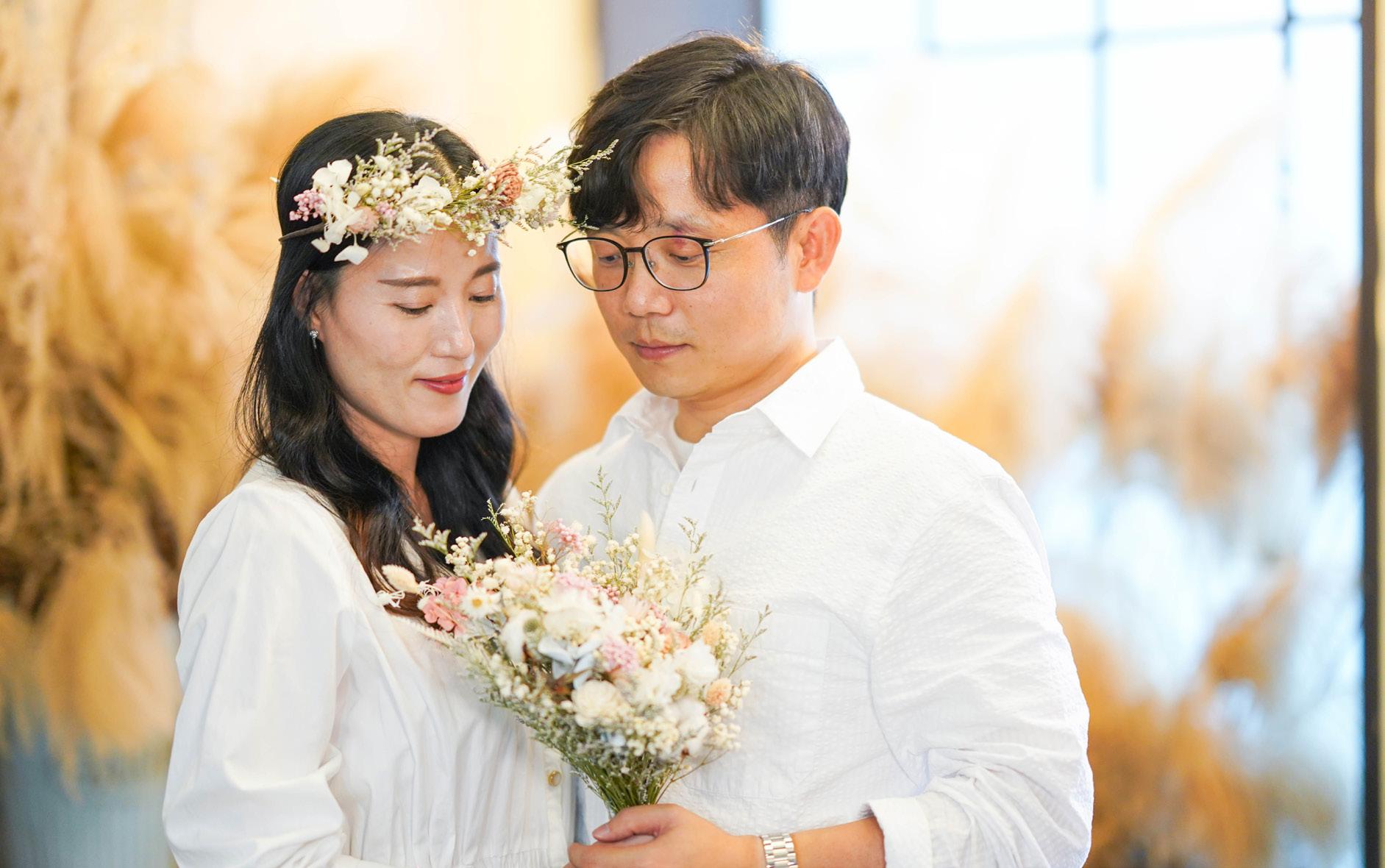 新娘:『修補工具』及『筆刷』改善臉部細微斑點及柔和線條。