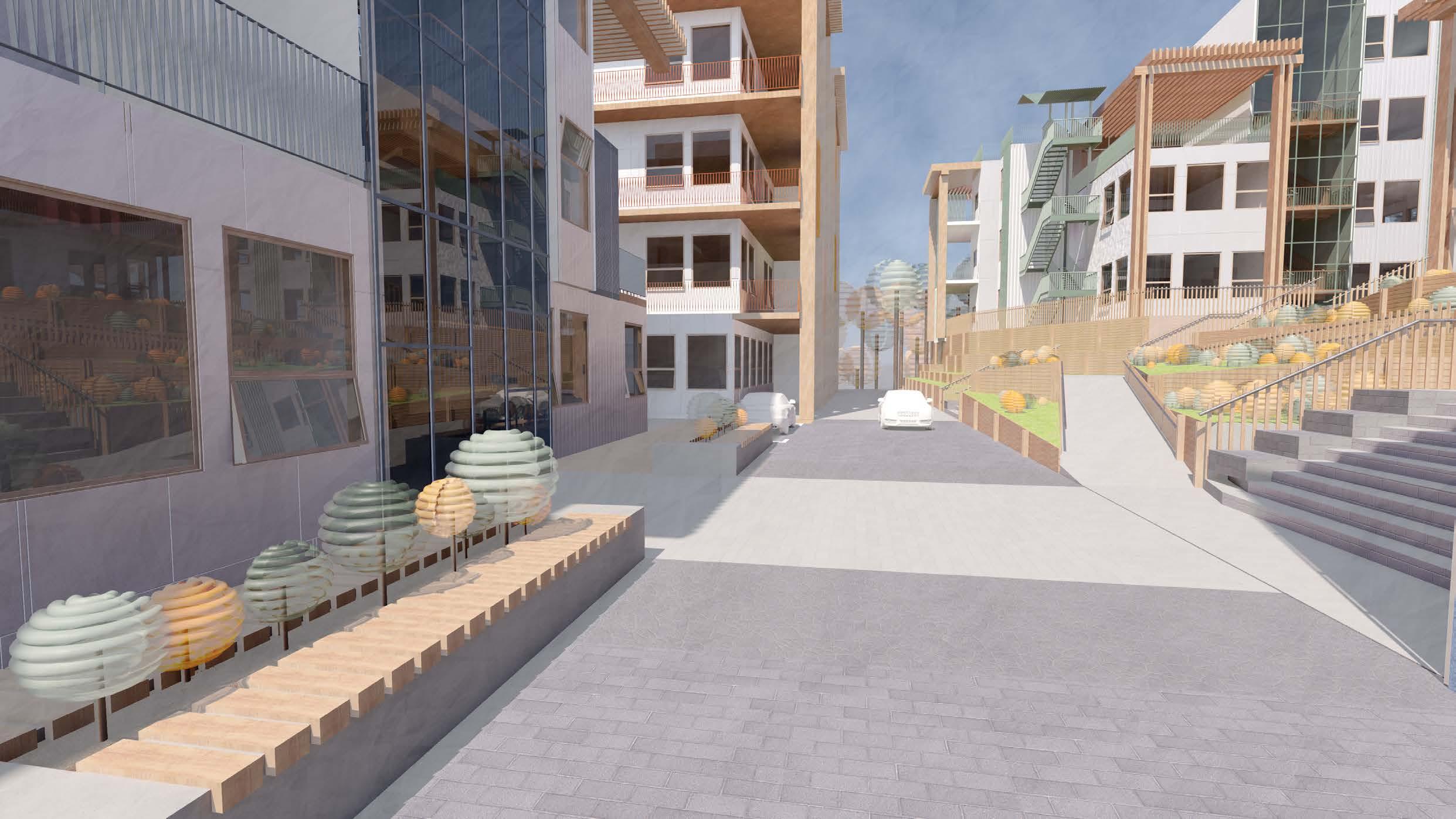 Victoria St Vertical Village explores the connection between the city and sea. Wellington is expected to experience a housing deficit of 5,248 by 2047, and it is crucial we start exploring higher density living options. This site is to house co-working spaces, apartments, and light rail transit hub. These programmes are to interconnect with one another to aid in the transition between the commerical and the residential. This project seeks to reimagine inner city living in Wellington CBD. This medium-high density build seeks to create communities that bring people together whilst allowing for indivualisation of the living space. Courtyards are to be utilised to create communal outdoor living spaces. The design is to be informed by the Wellington waterfront framework, which seeks to create shared spaces that enhance the user experience across the harbour. New buildings are to be complementary to, and of appropriate scale in relation to the surrounding buildings. Public spaces are to contribute to the vitality, recreational potential, and social inclusiveness of the waterfront. Passive surveillance and better public transport options should be explored and should include some form of shelter.