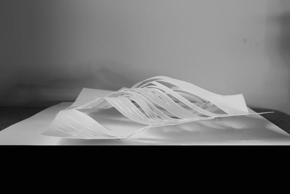 Part of the design process for the Te Papa Tongawera project was iterative modelling. Using cardstock, curvilinear forms were explored in order to gain a richer understanding of real life limitations.
