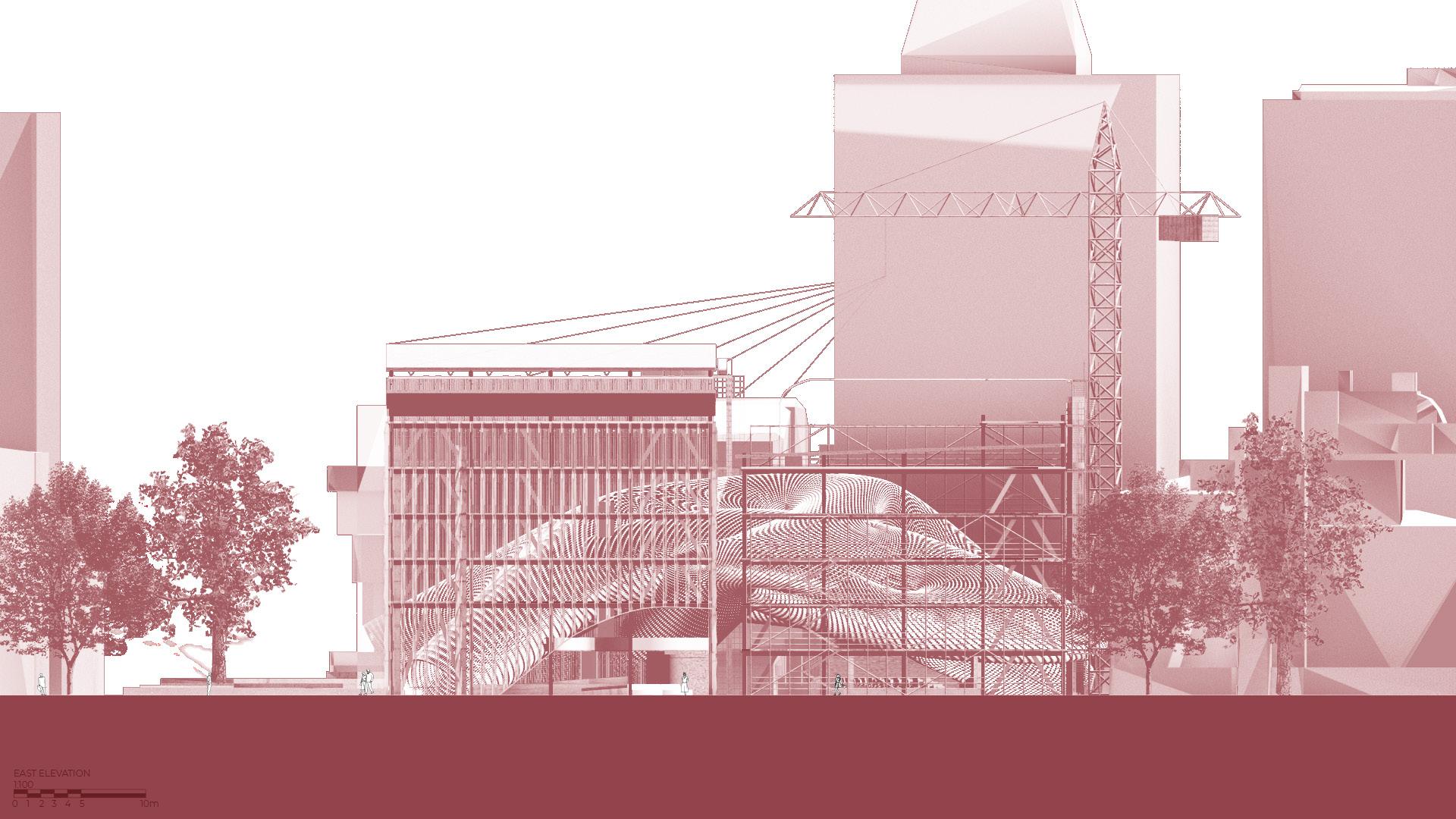 The proposal for Heke Rua Archives seeks to explore the relationship between the past, the future, and the present. Three rectilinear buildings represent the western linear view of time whilst the repository takes a curvilinear form that weaves throughout the ‘past’, ‘present’, and ‘future’ buildings. To enhance the architectural form, the structure is to allow a free plan that allows users to create their own journey through time. All buildings are symmetrical and utilise the same floor dimensions, with 1500mm gaps between each building. This gap acts as an architectural separation of spaces as well as a seismic gap to allow for freedom of movement in the event of an earthquake and/or extreme winds.