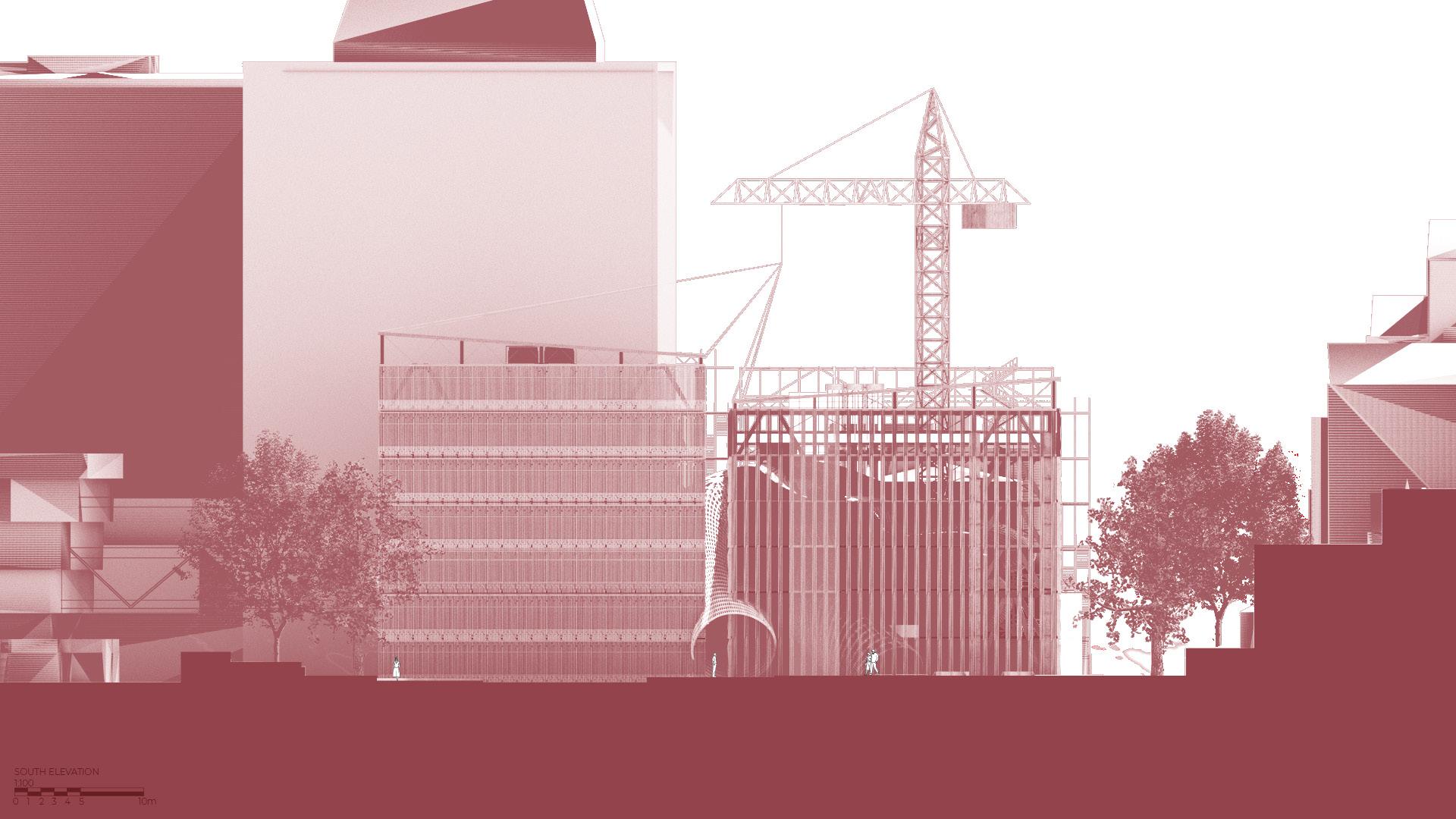 The combination of rectilinear and curvilinear forms through physical modelling allows for a deeper understanding how parasitic architecture can be carried out.