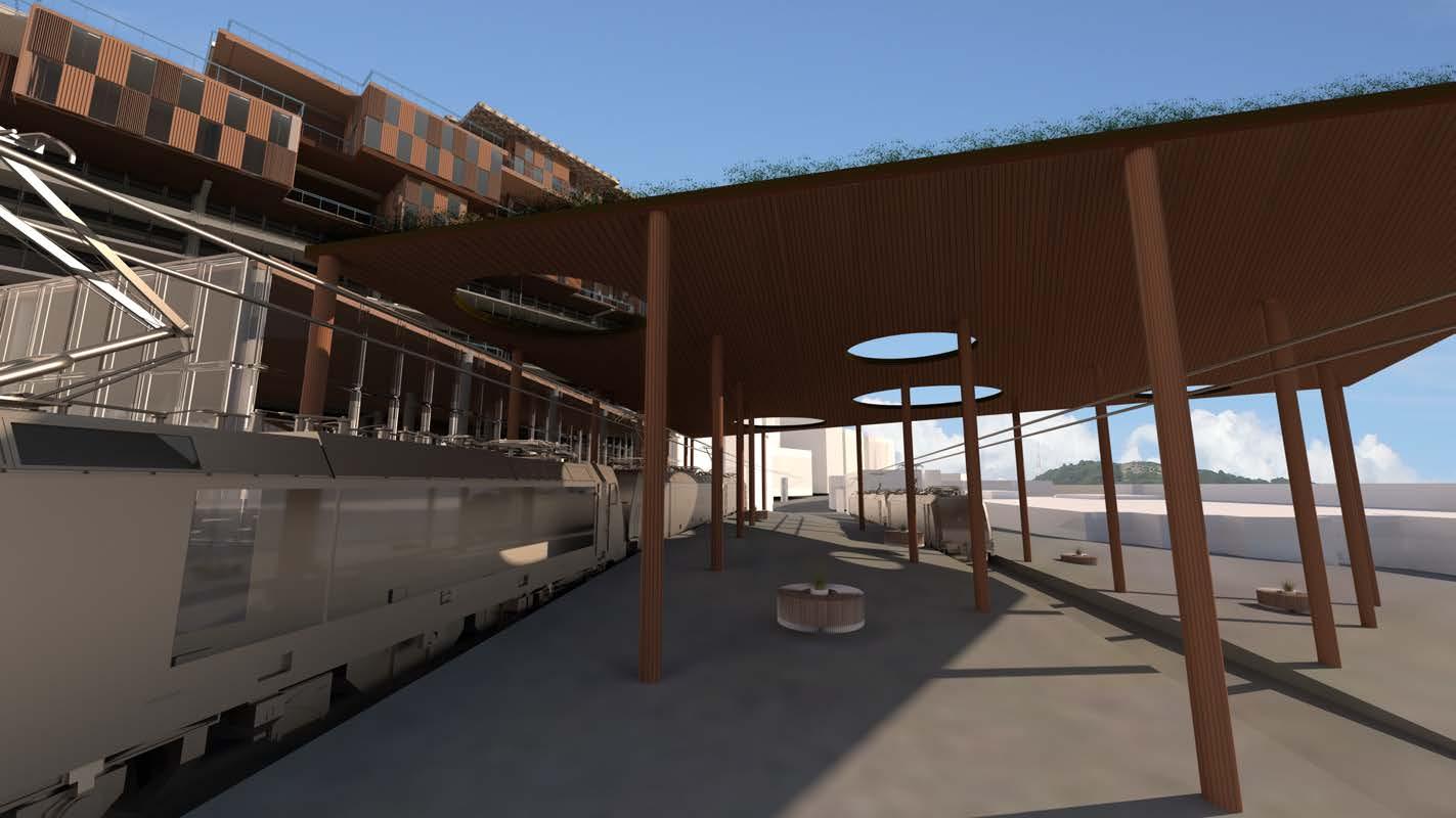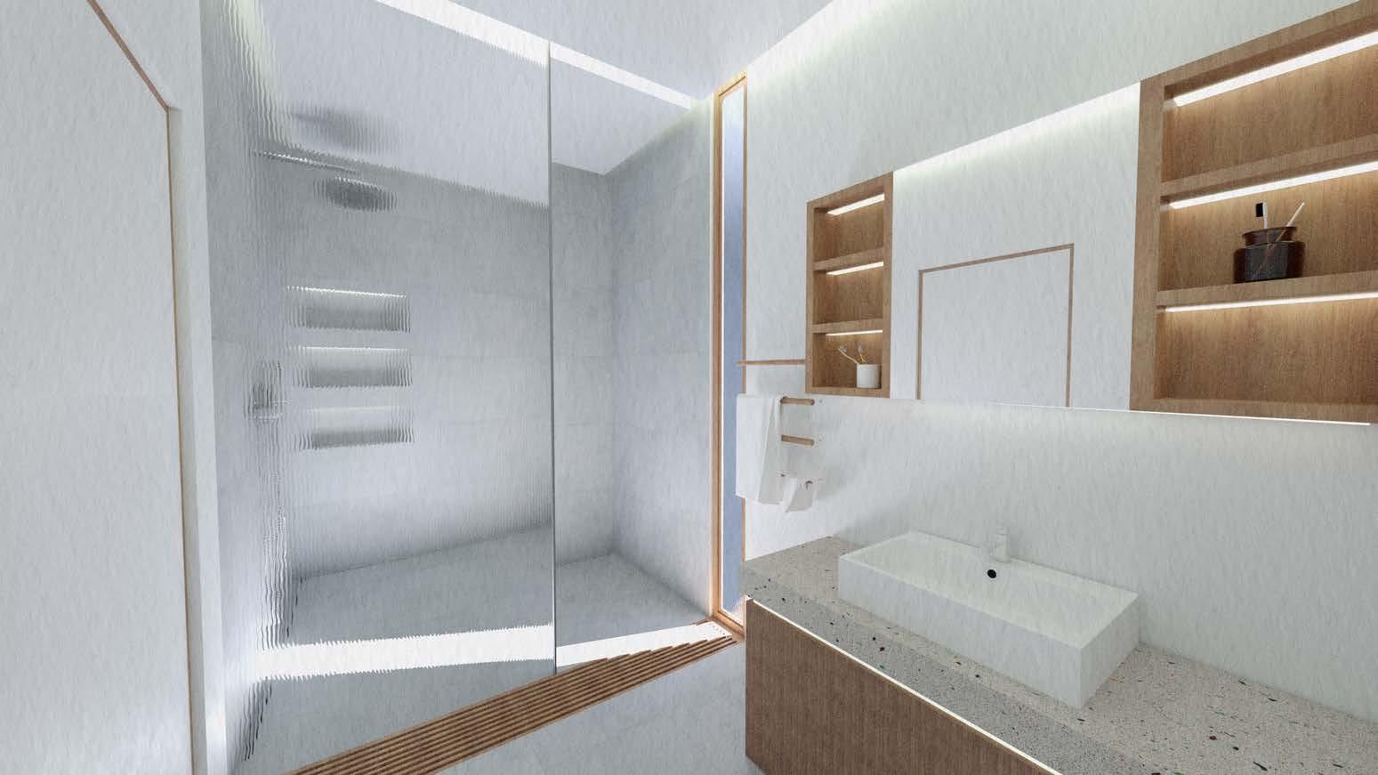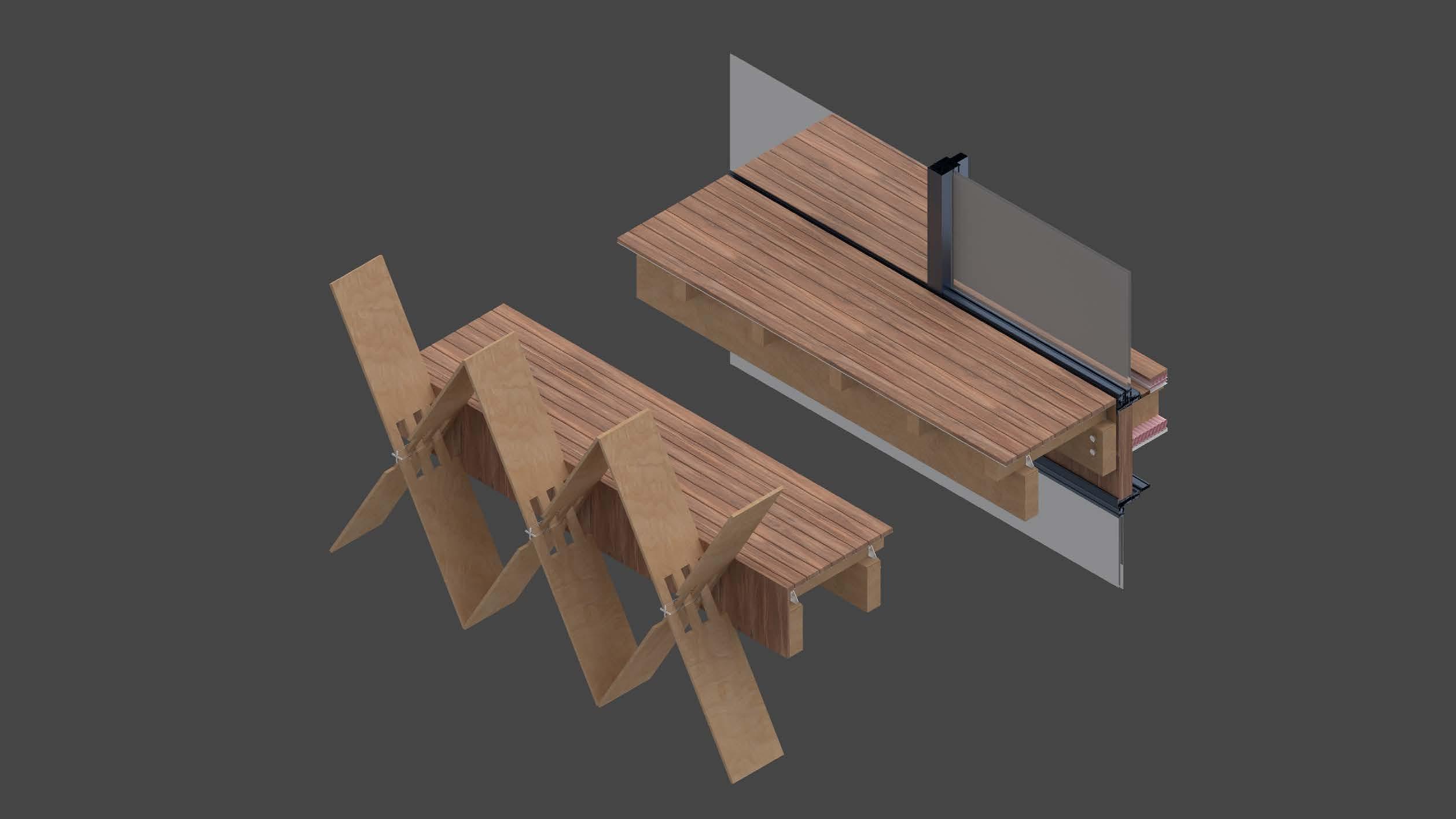 TIMBER DECK STRUCTURE FOR VISUAL CONSISTENCY BETWEEN INTERIOR AND EXTERIOR. FORMWORK TO MINIMISE VISUAL WEIGHT.