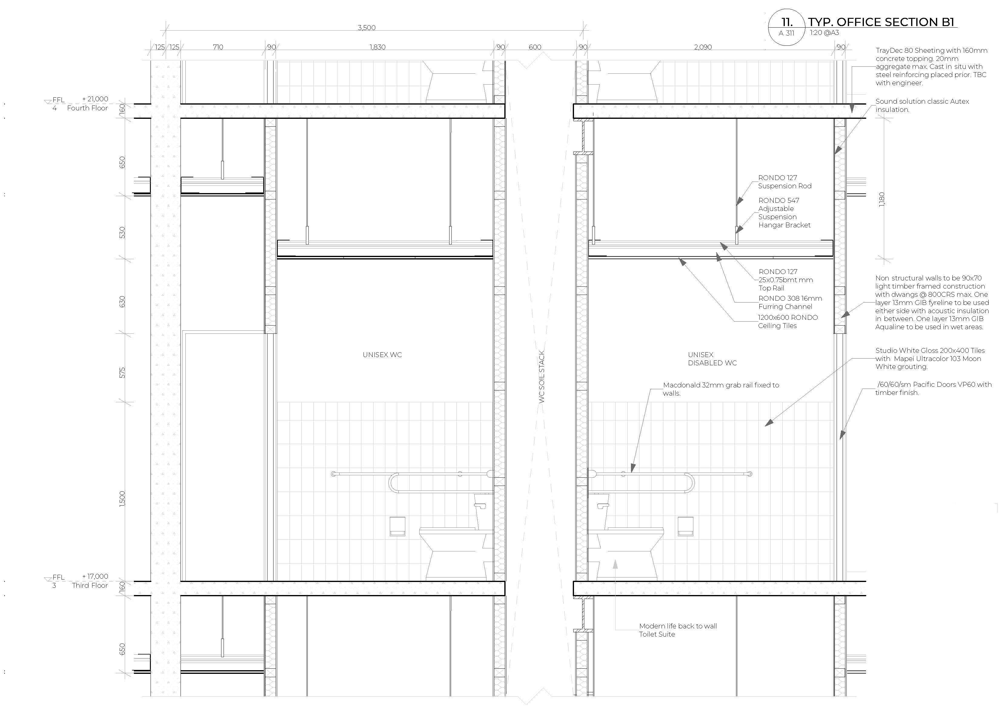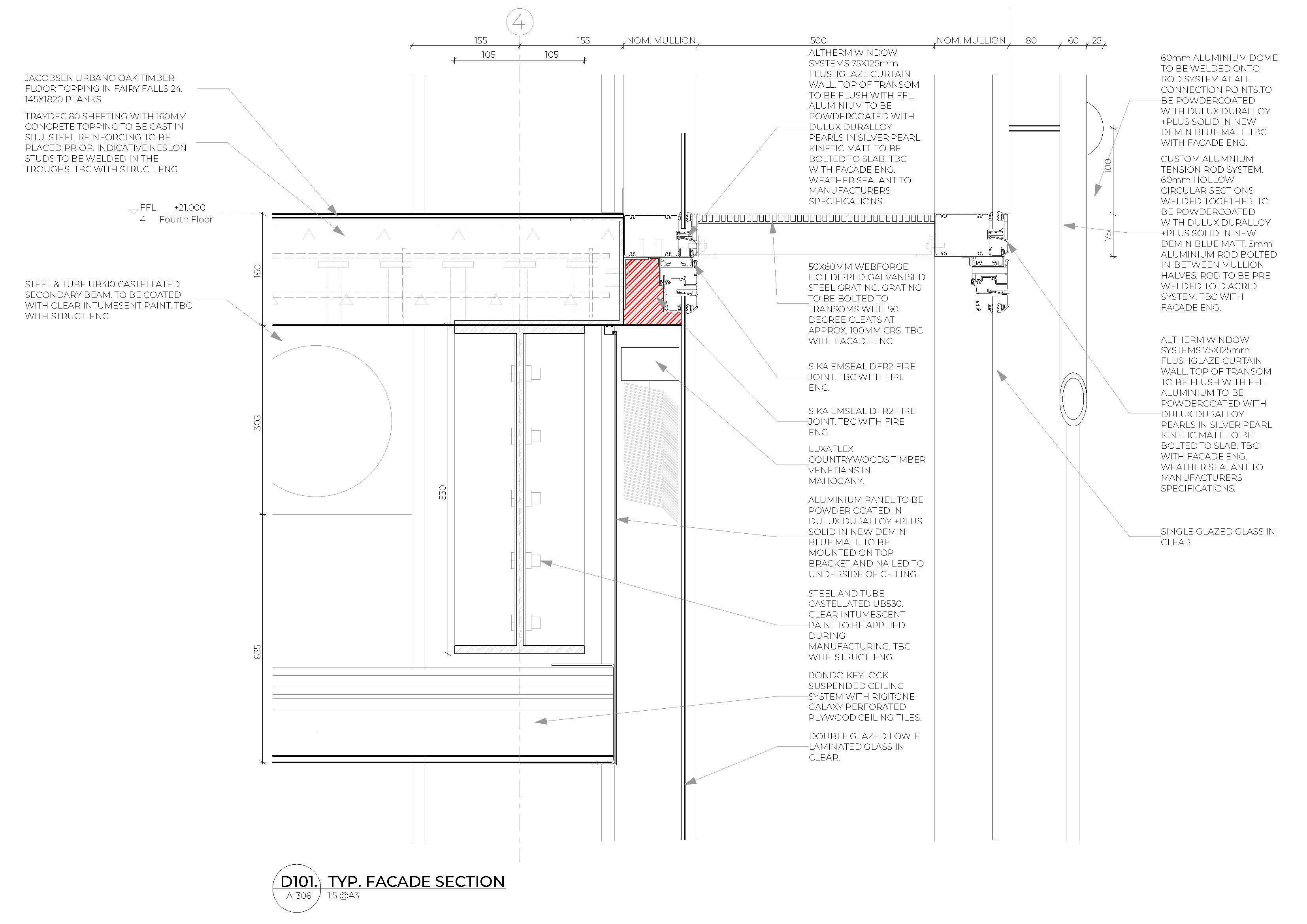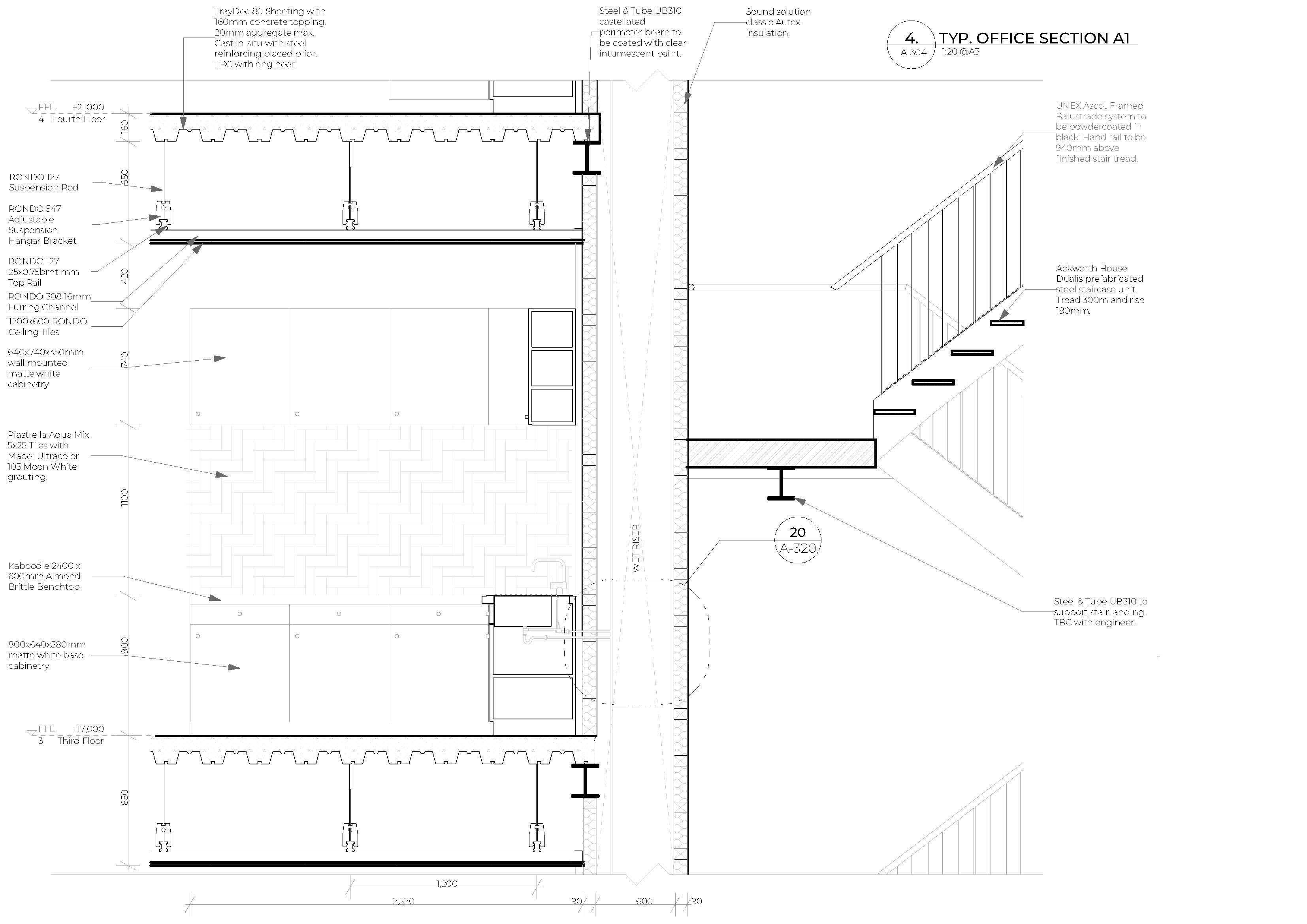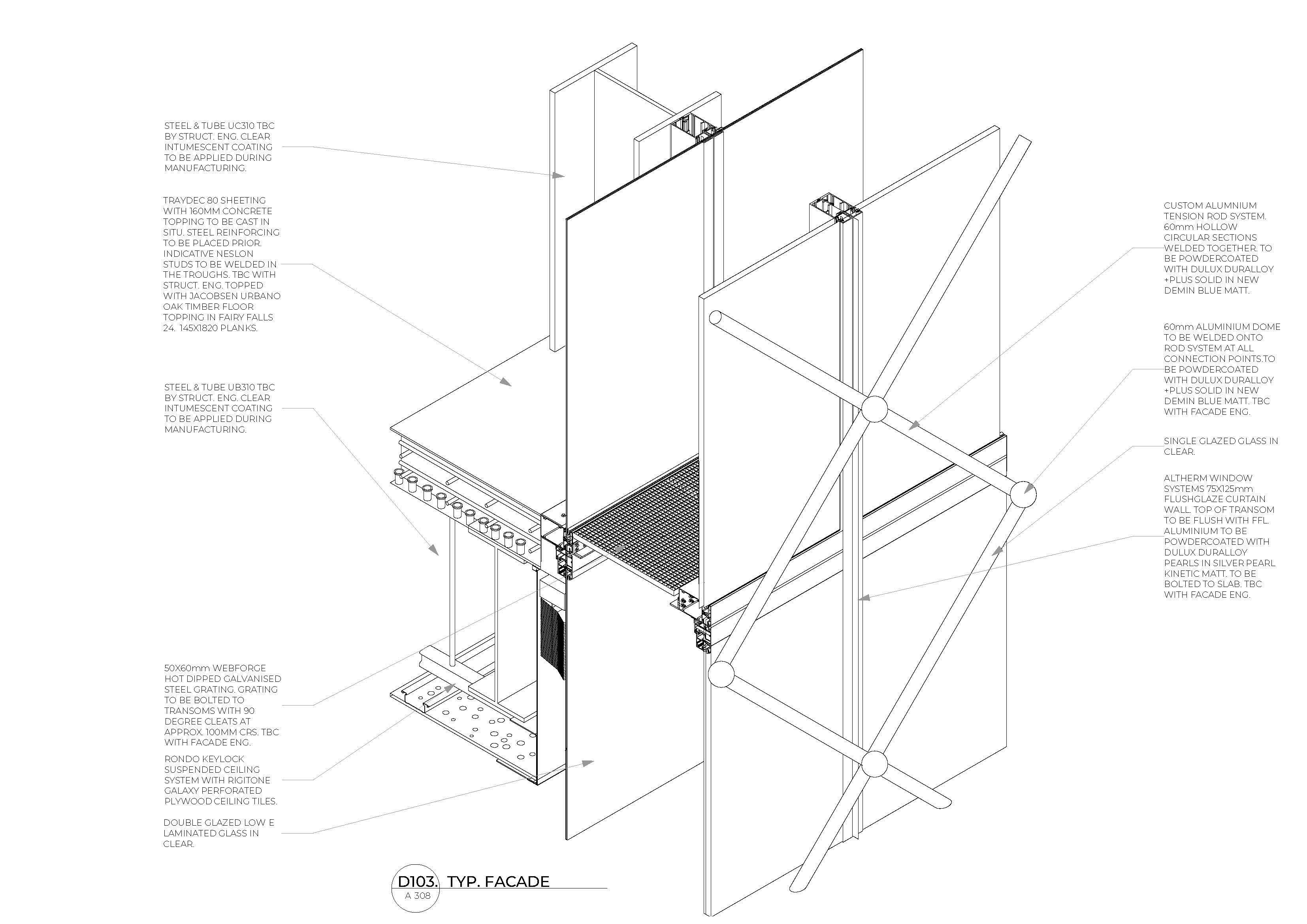 INDICATIVE STEEL CONNECTIONS TBC BY STRUCT. ENG. 18mm BB GRADE PLYWOOD COATED IN DULUX ‘CADRONA HALF’ MATT PAINT.