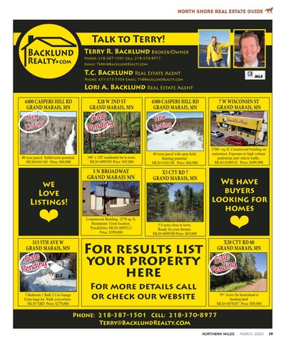 Phone: 218-387-1501 Cell: 218-370-8977 Terry@BacklundRealty.com NORTHERN WILDS