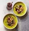 5. Ladle the soup into bowls, top with the turkey mixture, add a little freshly ground black pepper and evenly dollop over the cranberry sauce to serve.