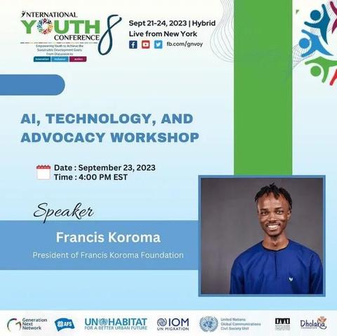 OurPresident@franciskoromaofficialwillbegivinga speechtodayabouttheimportanceofAI,Technologyand AdvocacyWorkshopandhowyoungpeoplecanutilize thisrecourseforagreatergoodtodayat@iycforyouth. September23,20234pmest