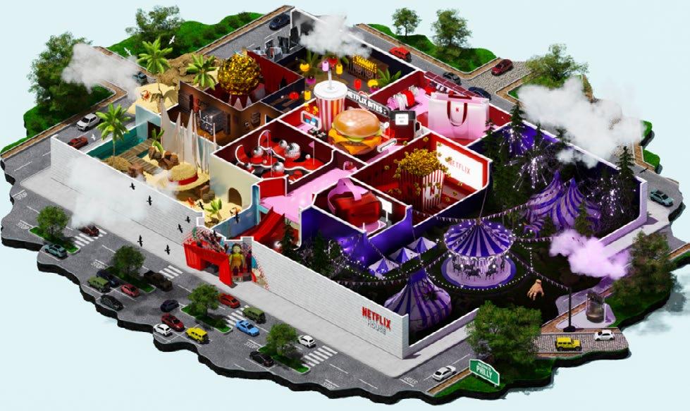Netflix House no es un parque temático tradicional. Ocupando casi 10,000 metros cuadrados en lo que antes eran tiendas departamentales, estos espacios son centros de entretenimiento inmersivo ubicados estratégicamente en centros comerciales suburbanos.