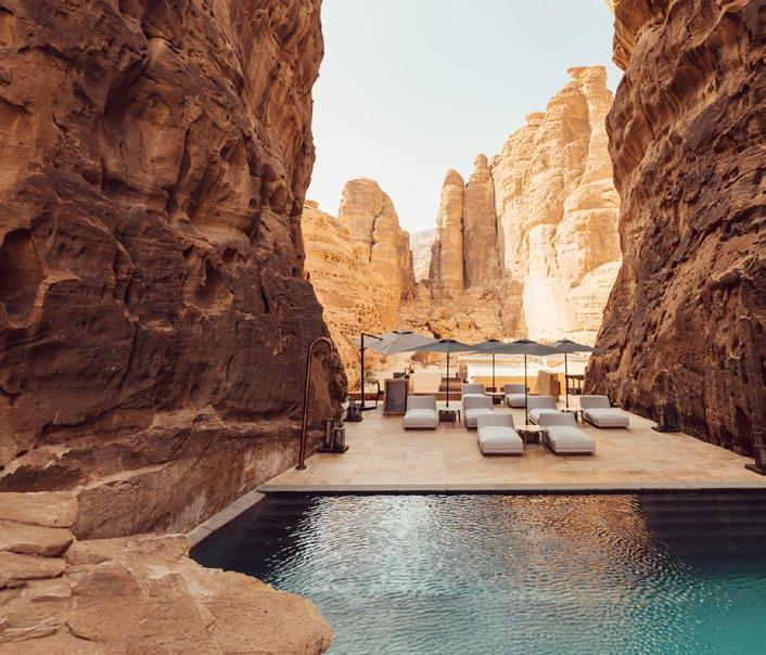 Este destino emergente es puro romance desértico. La combinación de paisajes de roca roja, la arqueología nabatea de Hegra y noches estrelladas de una claridad absoluta crean una atmósfera mágica. Alojarse en una villa con piscina privada en el Banyan Tree AlUla, en el valle de Ashar, es la guinda perfecta.