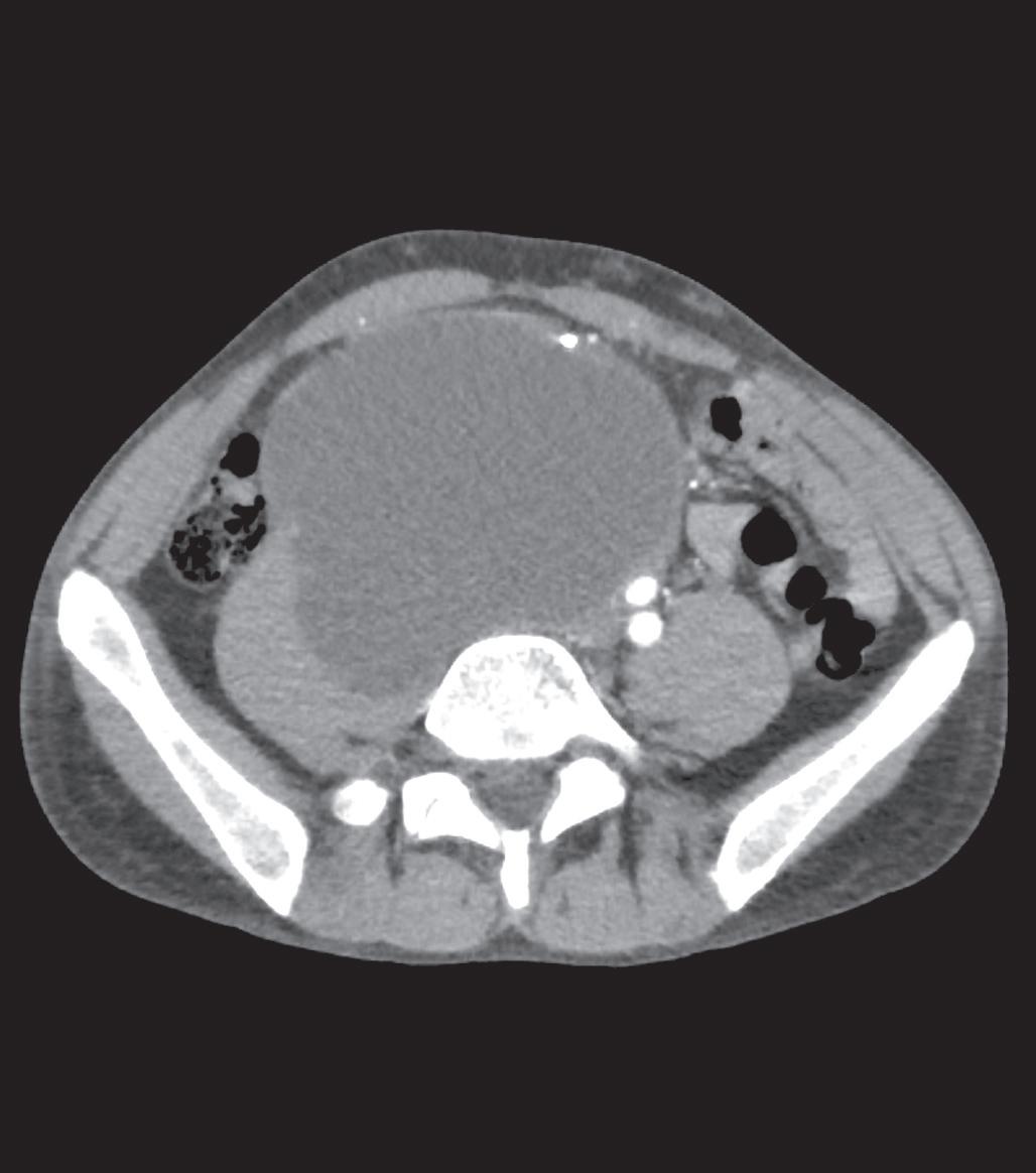 Primary testicular teratoma with cystic retroperitoneal metastases